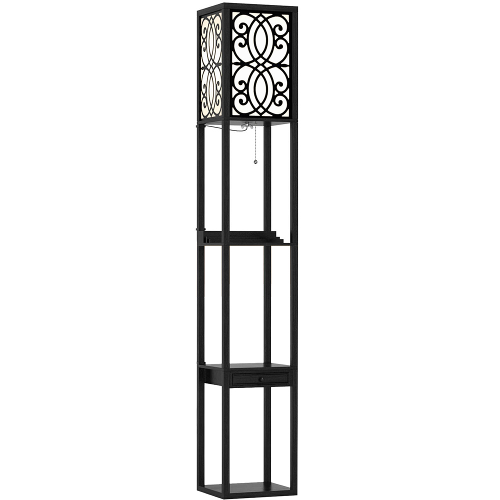 Brighten up your space while keeping it tidy with the Costway Single Drawer 3 Shelf Tall Storage Floor Lamp with 2 USB Charging Port. It features not only illumination but also built-in convenience for charging and storage. This floor lamp integrates two 5V/2A USB ports, allowing you to charge devices effortlessly, while the pull-switch chain adds a touch of comfort by eliminating the need to bend over to turn off the light. Perfectly blending functionality with style, it comes equipped with a practical drawer and three open shelves, providing ample space to store essentials like remote controls, photo frames, and magazines. The elegant wood grain design and white lampshade ensure it complements any room decor, making it a versatile addition to either your living room or bedroom.