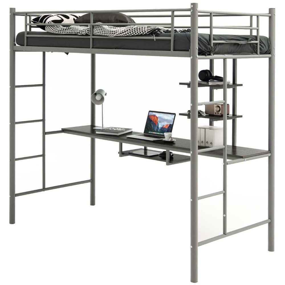 Elevate your living space with the Costway Single Silver High Sleeper, a perfect blend of functionality and style. Crafted from powder-coated iron slats, this loft bed boasts excellent toughness and strength, ensuring durability for years to come. It features a spacious desk and additional shelves, providing ample storage and working space right where you need it. The under-bed area offers generous room for various uses, whether for studying, leisure, or storage. Safety is paramount with reinforced guardrails and wide ladders for easy access, making it an ideal choice for kids' rooms, dormitories, or small apartments.