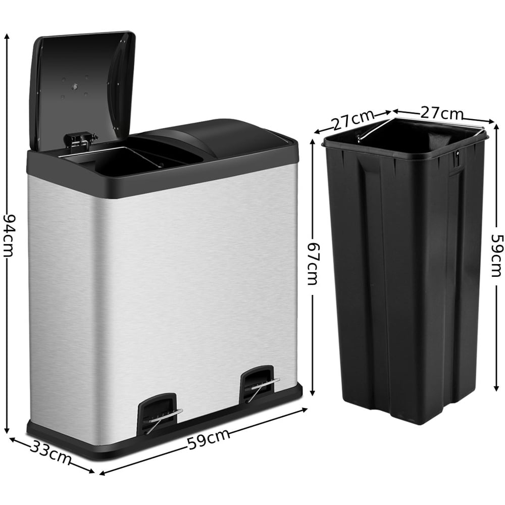 Elevate your waste management with the Costway Stainless Steel Double Bucket Pedal Bin 60L, an efficient solution that combines style and functionality. This sleek trash can features dual compartments with a capacity of 30L each, perfect for separating recyclable and non-recyclable waste effortlessly. Its rectangular design not only saves space but also fits neatly against any wall or flat surface. With user-friendly foot pedals, you can easily access the compartments hands-free, while the fingerprint-proof stainless steel finish ensures that the bin remains clean and smudge-free. The removable inner buckets with convenient side handles make disposal a breeze, enhancing your overall experience with hygiene and ease.