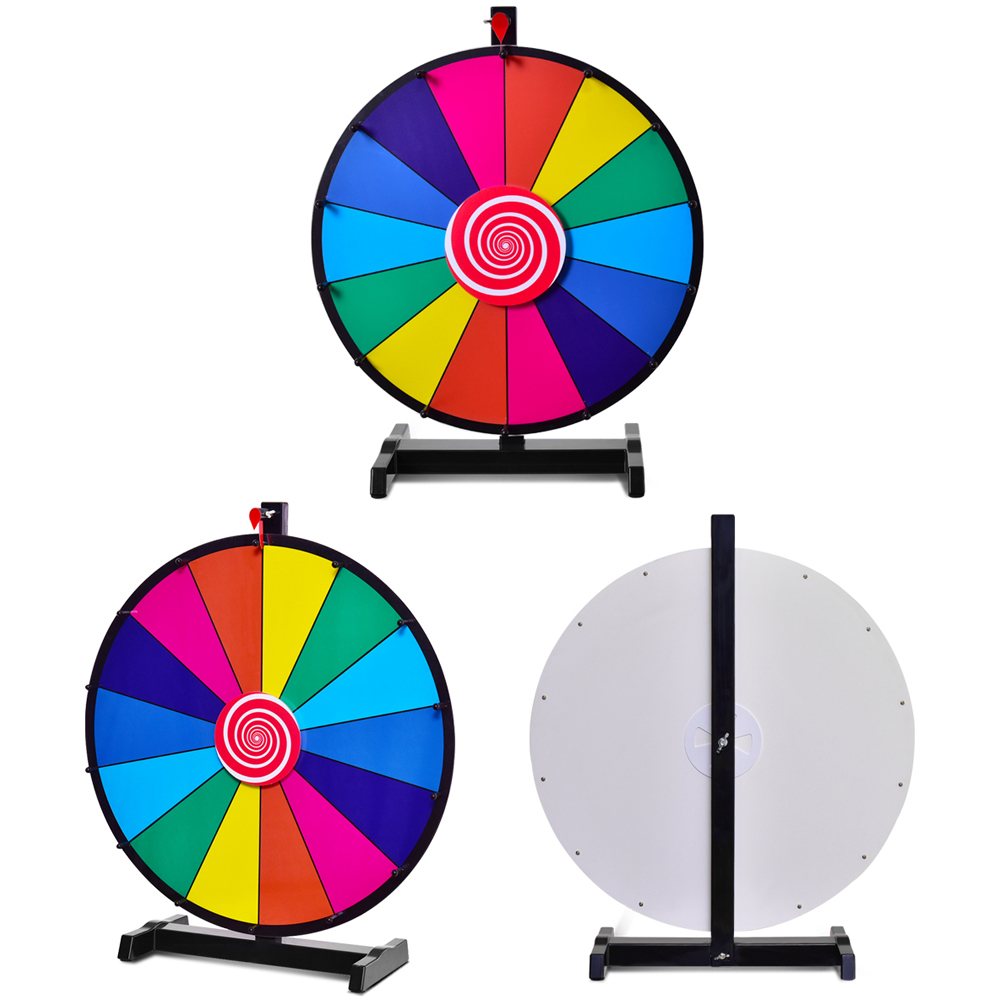 Add extra fun to your parties with the Costway Colour Spinning Wheel for Prizes 60cm. The two side bearings are designed to provide stability, balance, and smooth spinning without scratching the tabletop. The wheel features a gradient rainbow-like colour and 14 evenly distributed slots for a colourful and eye-catching display. With these customizable slots and clickers between each segment, the spinning speed can be controlled, and clicking sounds add excitement. The wheel has colour prize slots for logos or text and comes with a water-based pen and whiteboard eraser for easy cleaning and editing. The spinning prize wheel is suitable for company games, parties, promotions, and discounts, attracting attention and boosting morale.