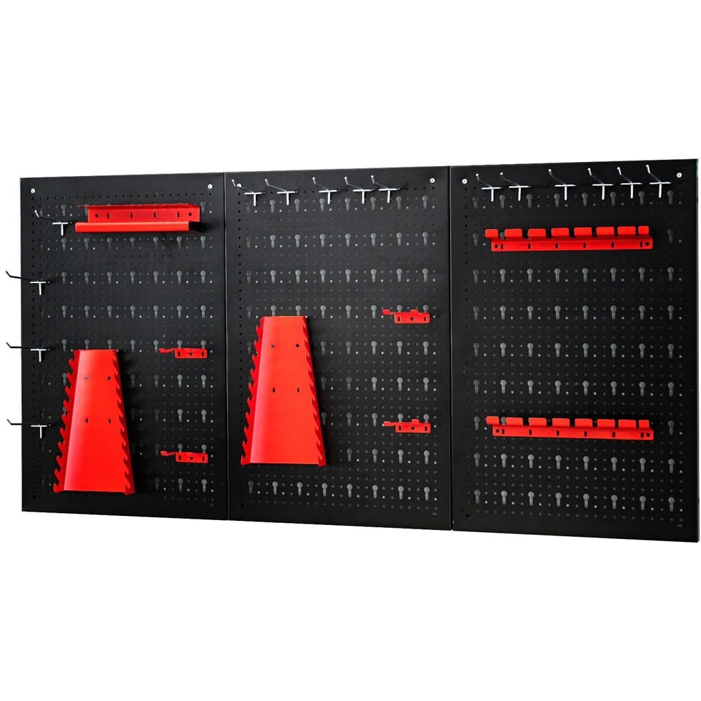 Ensure all your tools are stored neatly and efficiently with the Costway Wall Mounted Metal Pegboard Tool Storage Kit. This robust, high-strength metal pegboard tool organizer is ideal for any garage, workshop, or workbench. Constructed from powder-coated and cold-rolled steel, this pegboard organizer is durable and long-lasting. Various hook types are included to meet different needs, freeing up valuable space and maintaining cleanliness in your basement, workshop, or garage. All installation parts are provided, and one person can easily handle the installation. This tool pegboard offers great convenience and will be a valuable assistant during your work. It comes with 16 single-slant pegboard hooks in two different lengths, perfect for tools with hangable holes, as well as four double-slant tool holders for hammers and pliers, and two 10-position wrench set racks for wrenches of various lengths. There are also organizers for drills and screwdrivers. The pegboard includes six expansion bolts, screws, and nuts, making it suitable for mounting on a variety of flat walls. This practical and versatile pegboard is suitable for various settings, including warehouses, garages, workshops, and repair shops. It comes with all necessary accessories and a clear installation guide, allowing for quick and easy assembly. The position of hooks and organizers is adjustable to suit your specific needs.
