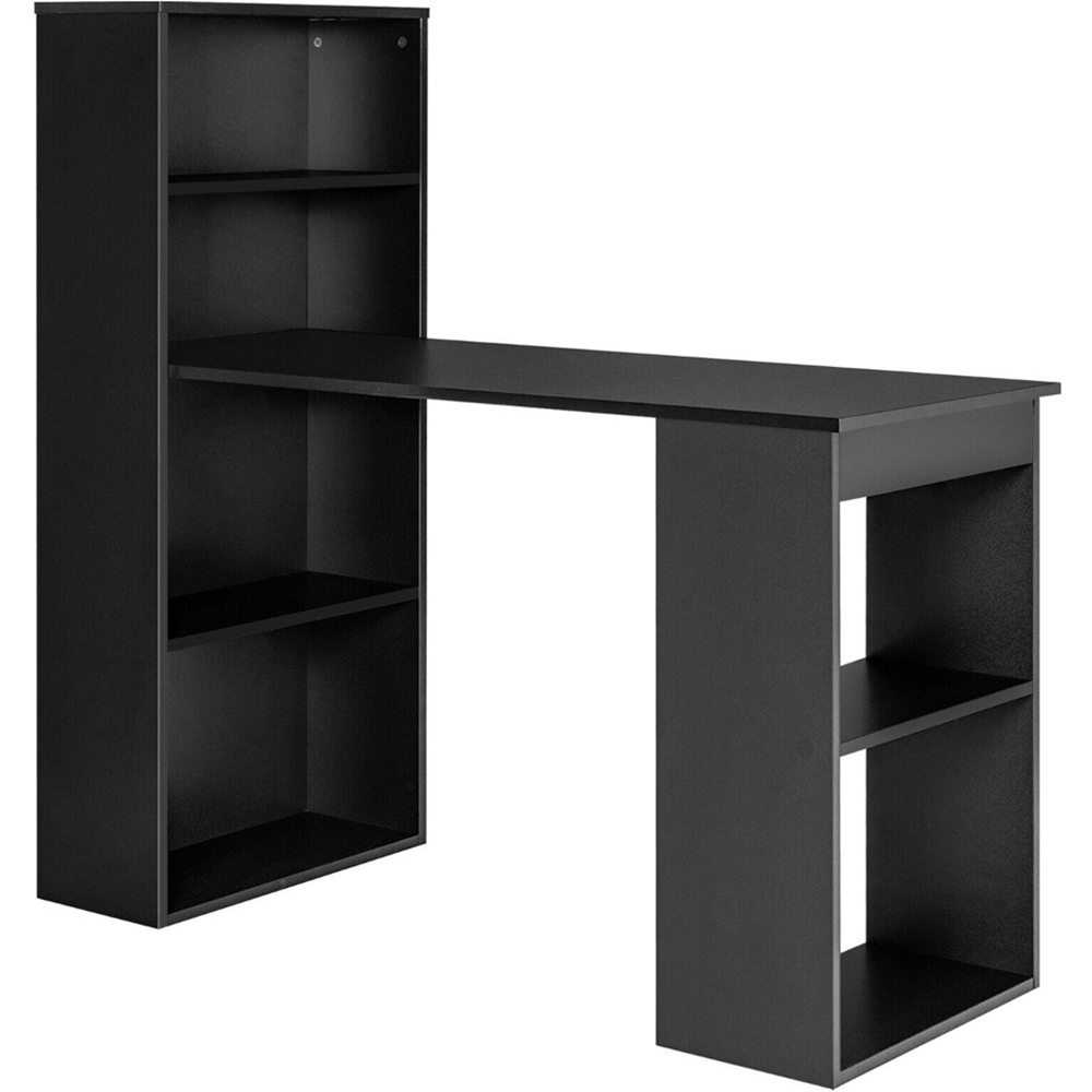 Elevate your workspace with the sleek and versatile Costway Wooden Computer Desk with Bookshelf Black. This multifunctional piece is a game-changer for those who value efficiency and style in their work or study environment. Offering a generous six-tier storage system, including a four-tier bookshelf and a two-tier side shelf, this desk provides ample space for all your essentials. The flexibility to remove the middle shelf for larger items like a computer post and the choice to orient the bookshelf on either side makes it a perfect fit for any room layout. Whether used in a home office, dorm, or living room, its sturdy engineered wood construction ensures longevity and ease of maintenance.