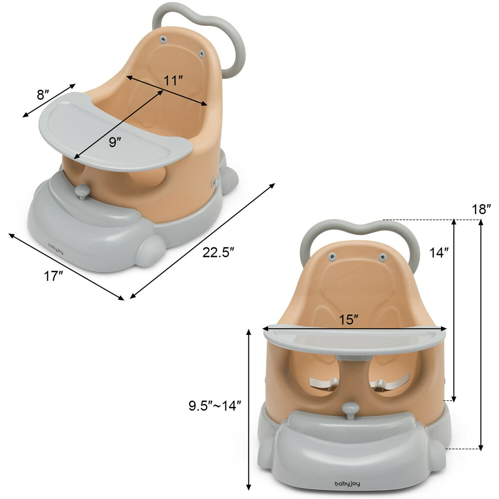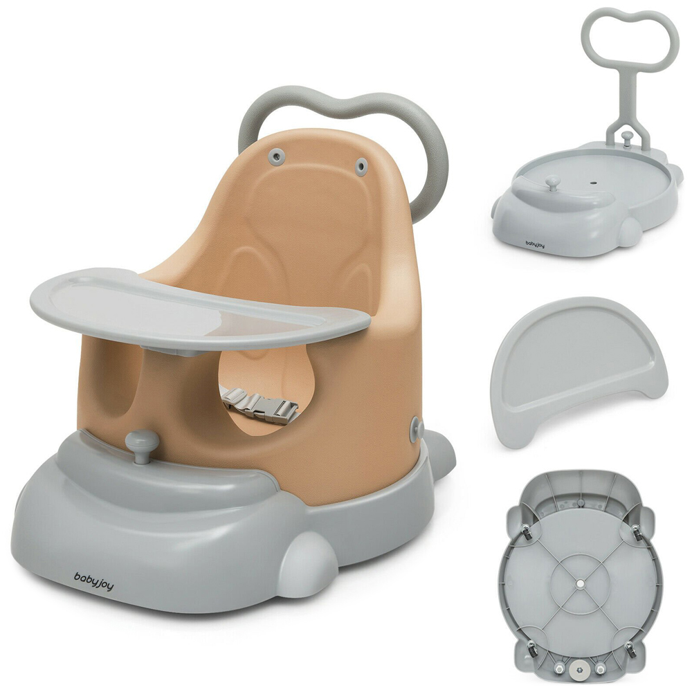 Provide your baby with the most functional and safest dining chair with the Costway Yellow 6 in 1 Baby Walker Training Set. This baby booster features a PU seat with a tray, which not only provides a comfortable sitting experience for a toddler but also helps the parent to feed babies conveniently. Plus, there are two straps to secure the seat to an adult chair and the detachable tray makes cleaning easy after each meal. What's more, it is equipped with a stable base and a handlebar made of PP as a booster walk which helps toddlers to build their balance. Moreover, the whole chair set is waterproof, so babies can also sit on it while taking a shower. If you are still looking for a baby booster/ walker, this is an ideal seat for your little ones. The 6-in-1 booster seat meets all your baby’s needs Soft PU seat attaches securely to any chair with two straps. Easily convert from a booster seat to an independent seat. Easy to move with 360° swivel casters and handlebar three-point harness keeps your baby secure and in place. Features detachable and washable tray design for easier cleaning. Installs quickly and easily with the instructions. Suitable for kids from three - 36 months.