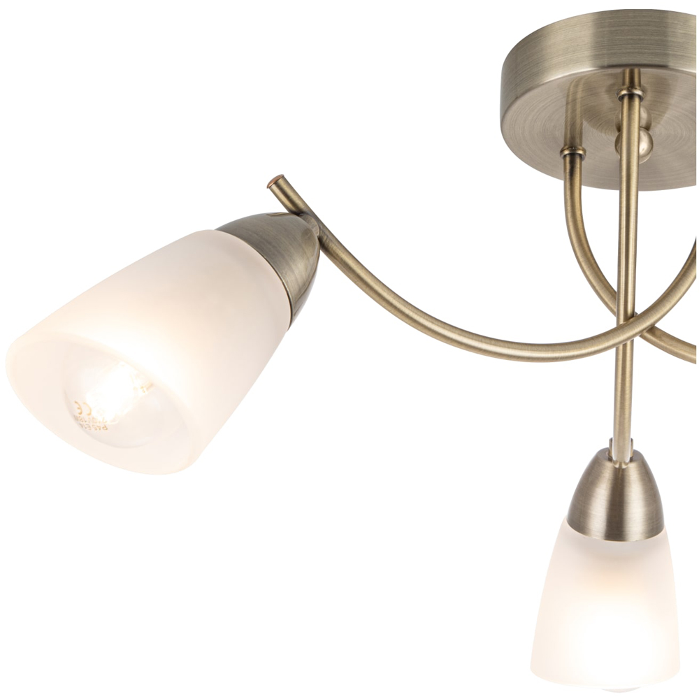 Introducing the stunning Hallie Bathroom 3 Light Classic Glass Ceiling Light. With its striking antique brass finish, this classic luminaire and a captivating glass that casts a beautiful glow. Designed for E14 bulbs, this fixture ensures brilliant lighting throughout your room. A perfect addition to bathrooms or ensuites, its design harmonises beautifully with traditional, classic, or transitional settings, creating an inviting atmosphere.