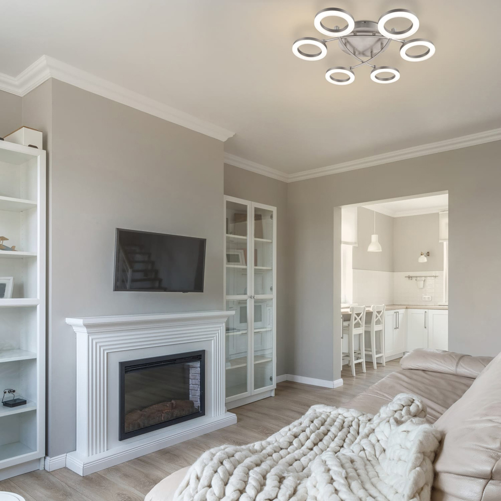 Discover the charm of the Juni 6 Ring Built-in, Integrated LED Modern Ceiling Flush Light. Crafted with a modern finish, this piece with unique metal flush mount creating a mesmerising play of light and shadow. This fixture ensures brilliant lighting throughout your room. Whether in living rooms, dining areas, or bedrooms, this fixture seamlessly integrates with modern, contemporary, or Scandinavian decor, enhancing its aesthetic appeal.