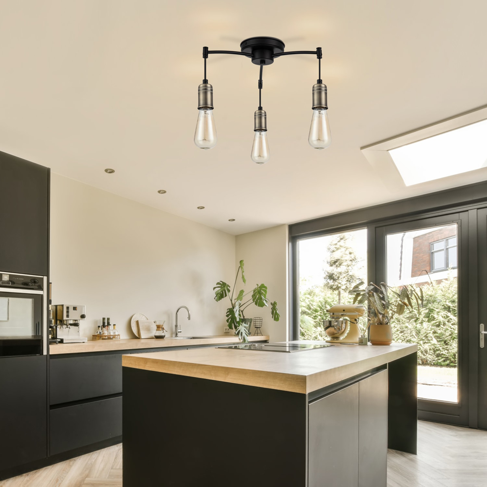 Transform your interior with the elegant Linton Industrial 3 Light Modern Ceiling Light. With its striking matt black finish, this industrial luminaire is designed to enhance any ambiance. Designed for E27 bulbs, this fixture ensures brilliant lighting throughout your room. A perfect addition to living rooms, dining areas, or bedrooms, its design harmonises beautifully with industrial, minimalist, or modern rustic settings, creating an inviting atmosphere.