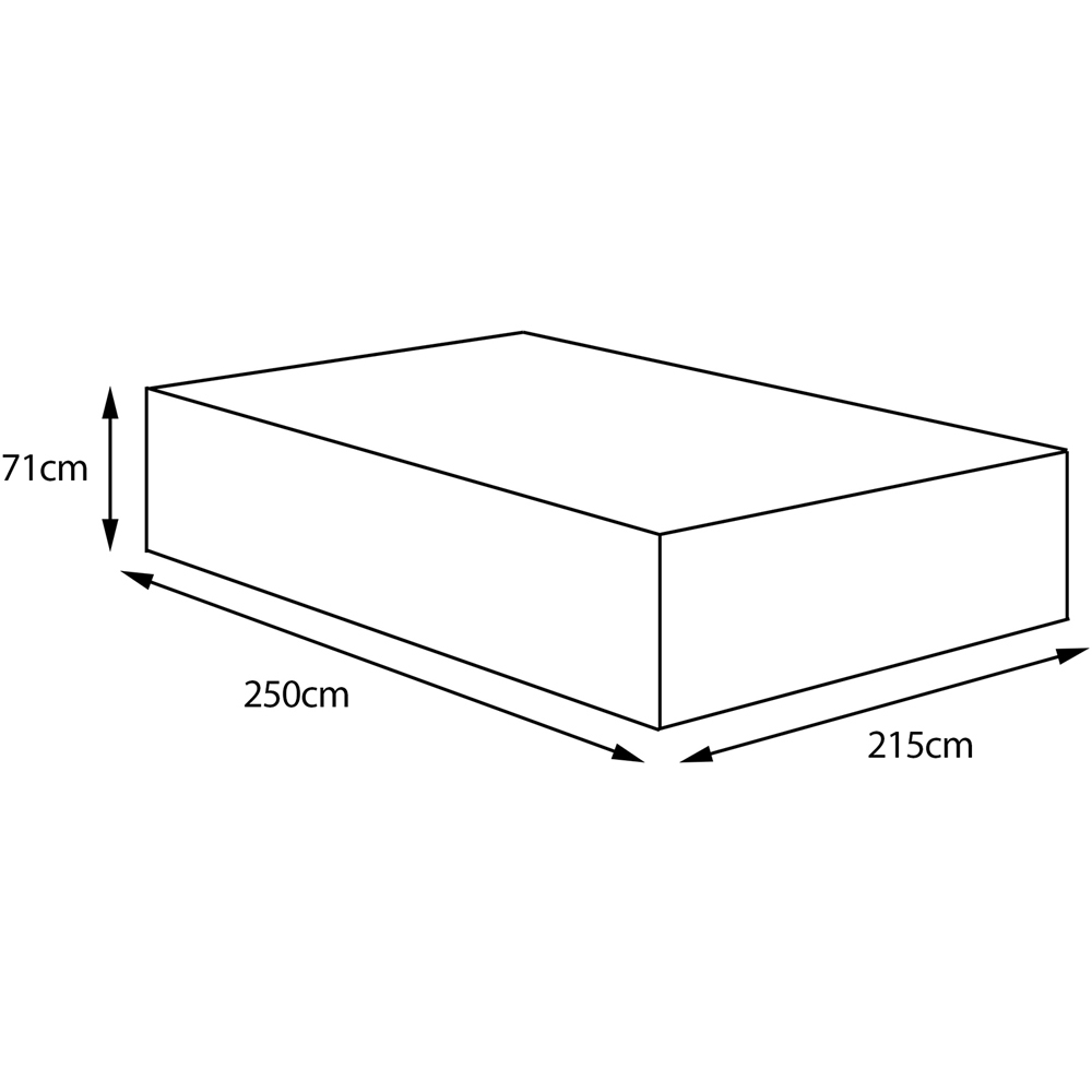 Protect your lounge or corner sofa dining set with the Cozy Bay Medium All-in-One Sofa Dining Cover in Green. Crafted from durable polyester with a PVC backing, this cover offers robust protection against extreme weather conditions. The vibrant green colour is UV-stabilised for long-lasting appeal. Designed for easy handling, it features brass-coated eyelets, heavy-duty ties, and a cord lock. The water-resistant design ensures your furniture remains safe and dry. Measuring H71 x W215 x D250cm, and weighing 3.25kg, this cover is perfect for keeping your sofa dining set in pristine condition.