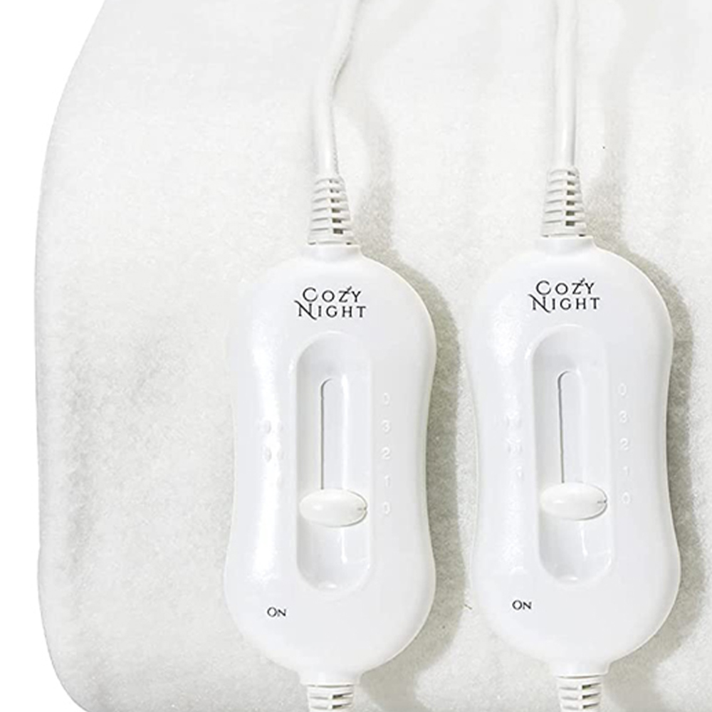 Add an extra layer of warmth for a comfortable night's sleep with Cozy Night King Fitted Electric Blanket. Featuring three heat settings - it makes for a perfect all-year-round electric blanket, as you can adjust the temperature to suit your needs. With low wattage of only 70W per control - you can do your bit for the environment. It is also memory foam compatible and overheats protection for your peace of mind. Designed and measured to fit the whole surface of the top of the mattress - simply pull the strap over the sides of each corner and fit in seconds with no lifting. It is also supplied with a handy zip-up storage bag for out-of-season use. Easy to wash - detach the controller and simply follow the washing instructions to make your blanket as good as new. It measures 200 x 152cm.