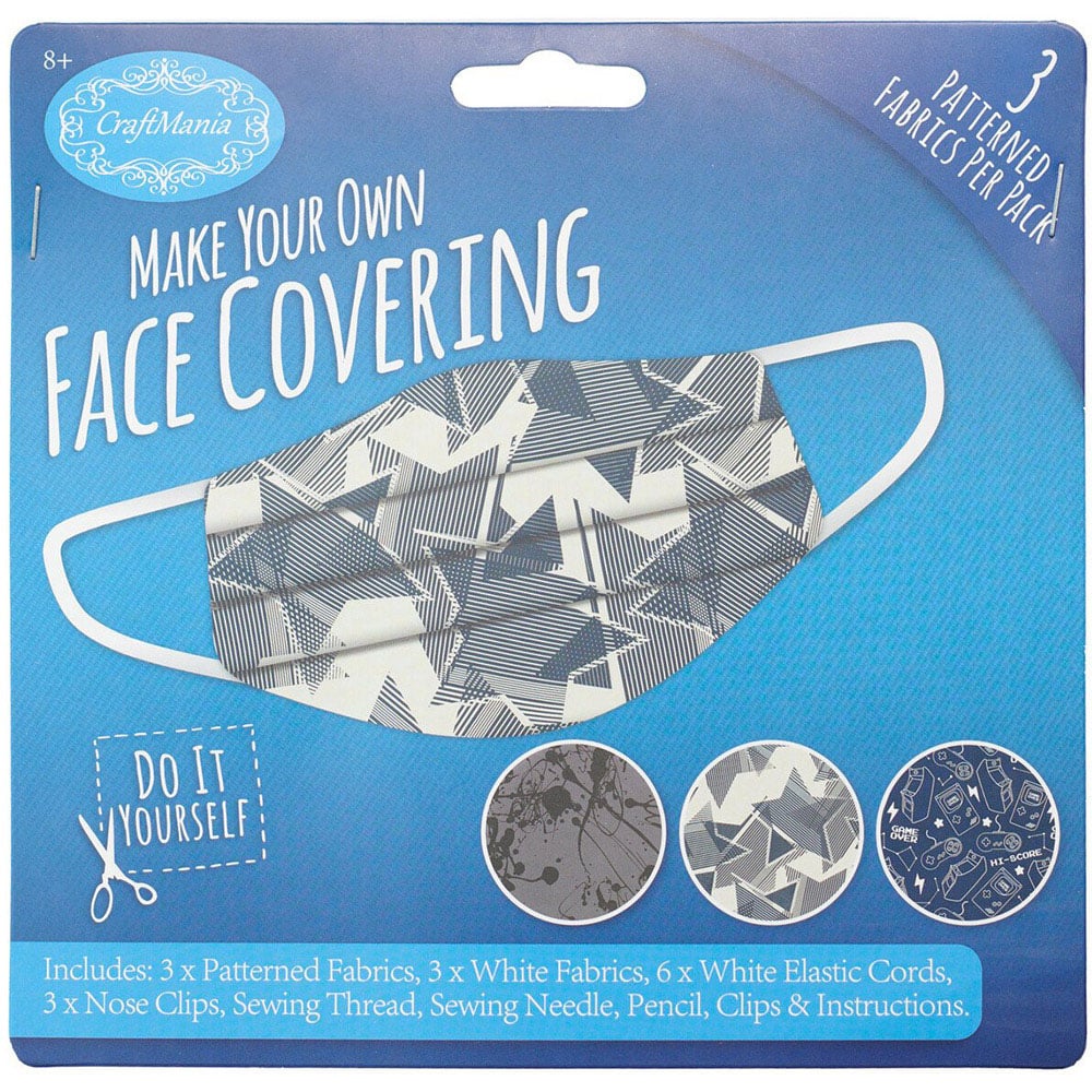 Make Your Own Face Covering with this great, fun-to-do kit. Perfect for beginner seamsters and those more expert, this kit contains everything you need to create 3 practical and fashionable coverings. Suitable for wearing in shops and on public transport, these non-medical masks are an essential accessory as you go about your day.
