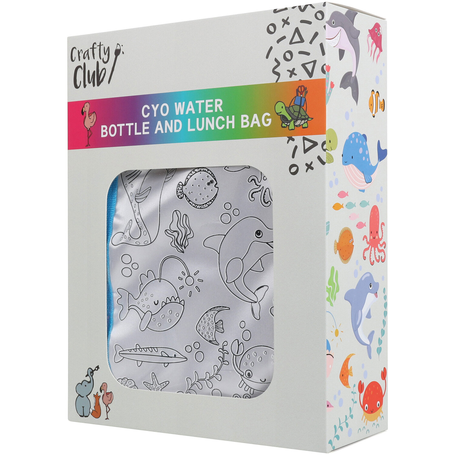 Nobody else in school will have the same as you with this Colour Your Own Water Bottle and Lunch bag. Personalise with the pens, stickers and gems included to create your own one-of-a-kind lunchtime accessories. Available in two different designs, you will receive either Safari or Sealife.