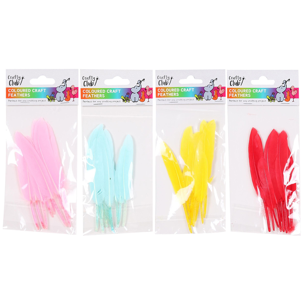 Create stylish arts and craft pieces with these vibrant Coloured Craft Feathers. These high-quality feathers have a huge variety of uses, including hat decoration, collages, papercraft and other general textile work. The rigid shape of these feathers makes them very easy to attach to, making them a must-have for any keen crafter.