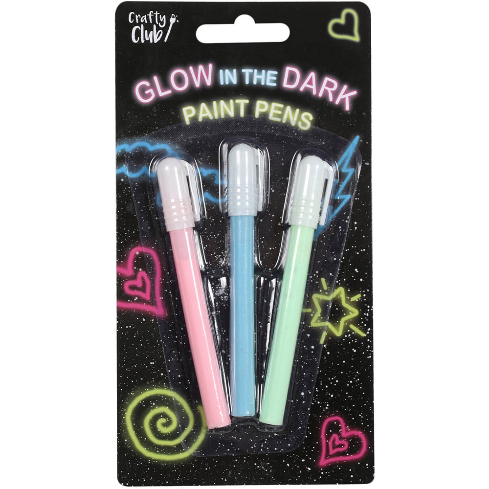 These Crafty Club Glow In The Dark Paint Pens can be used to add glowing highlights to art and craft projects. Create your own glow-in-the-dark features on drawings, stickers, posters and books with these easy-to-use pens.