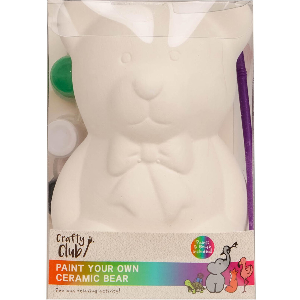 Create your own adorable decorations with this exciting Crafty Club Paint Your Own Bear Money Box set. With six paints, a paintbrush and a ceramic bear all included, all you need to do is have fun painting and then display.