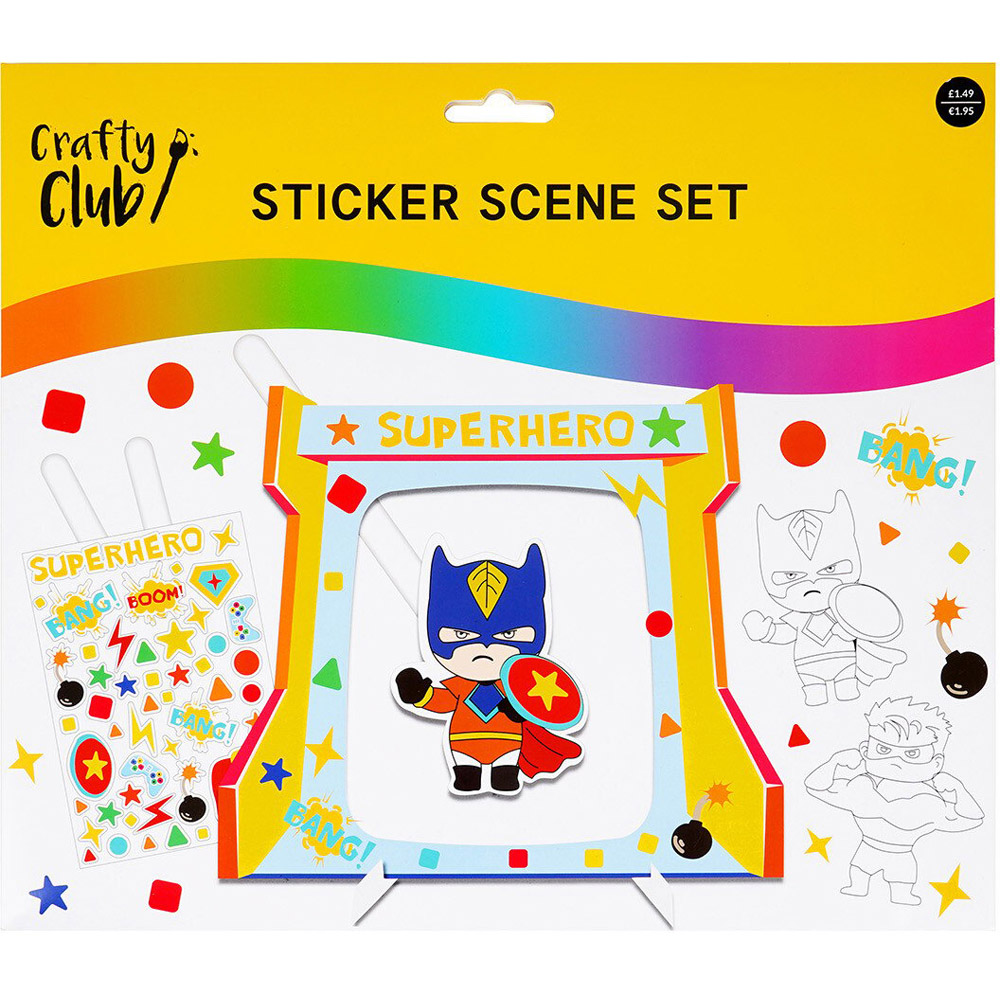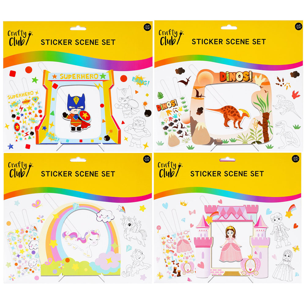 Keep children engaged for hours while encouraging creativity with this Crafty Club Sticker Scene Set. It comes in four stunning assorted designs including superheroes, princesses, dinos or unicorns that will appeal to any child. Calming and creative, it'll help children create stunning artwork to display.
