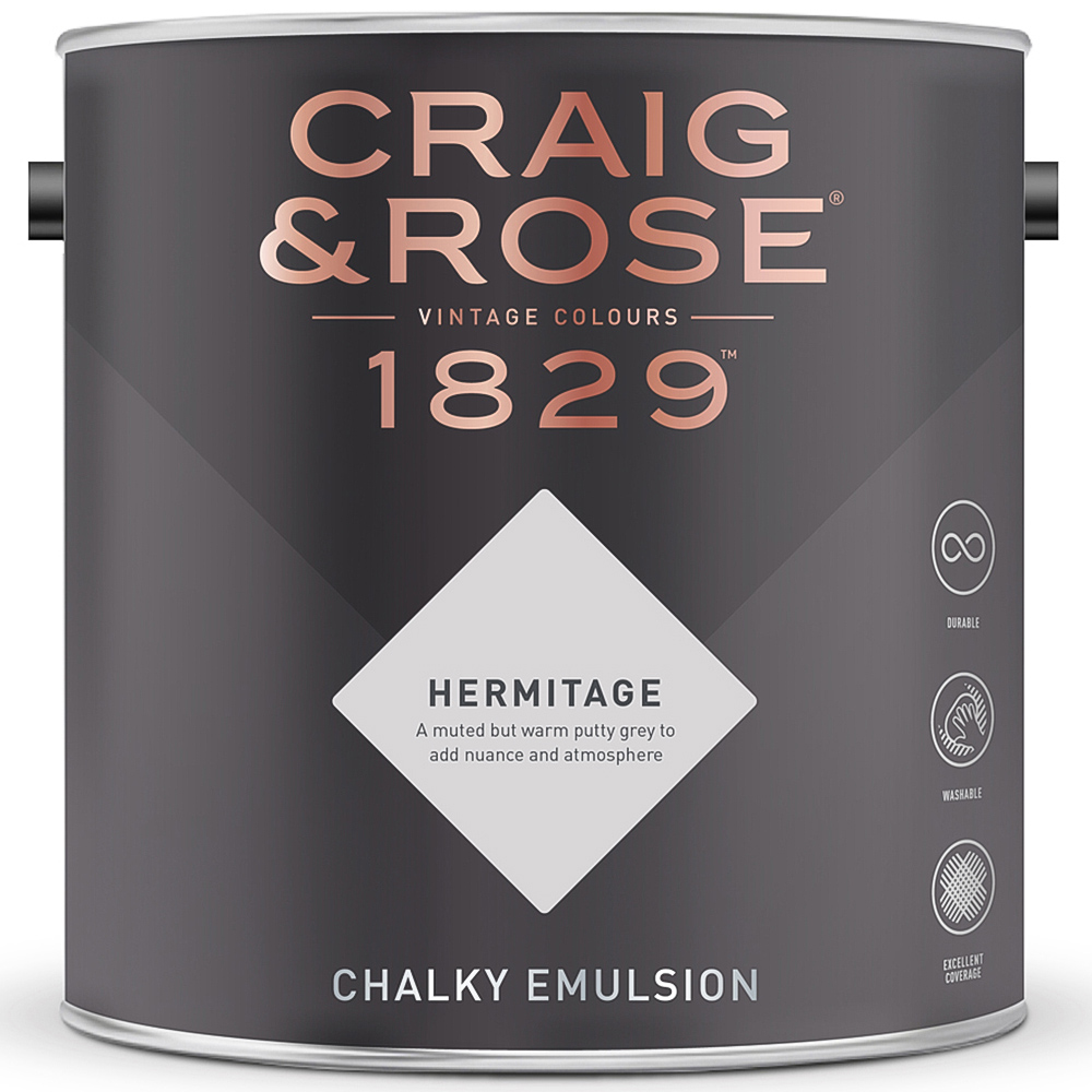 A muted but warm putty grey, this impactful and versatile shade adds nuance and atmosphere to a room. For use on interior walls, ceilings and furniture. A durable, classic matt finish with a soft, velvety texture. Cleverly hides imperfections and offers exceptional colour intensity.