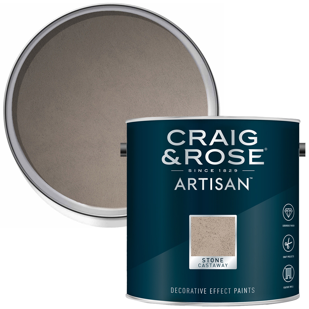 Redefine your space with the Craig & Rose Artisan Feature Wall Castaway Stone Effect Paint 2.5L. This uniquely crafted stone effect paint is perfect for those who appreciate a minimalist aesthetic. The textured finish creates a subtle yet captivating distressed look, adding a touch of natural beauty with its rich colouring when used on interior walls and architectural elements. To maintain the sharp appearance of your stone finishes for years to come, it's best to apply this effect to areas with minimal wear and avoid absorbent surfaces. The water-based finish replicates the matte, earthy texture of weathered natural stone, enhancing the look of feature walls, decor, and architectural details. For application, use a large roller or brush and remember to crisscross your strokes on the final coat to achieve the desired texture.