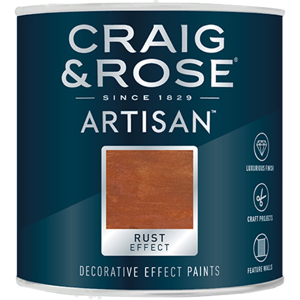 Get the perfect hue for your space with the Craig & Rose Artisan Walls Rust Effect Matt Paint. You can sculpt an industrial tactile feel to add contrast to your space. Use this paint and observe how oxidation takes place to leave painted objects and walls with authentic hues of rusted iron. It transforms garden ornaments and accessories into a centrepiece while adding a little bit of downtown cool to your feature walls. Please be aware that if you apply this paint before applying the rust activator solution, it will appear matt black. Capacity: 2.5L. Please Note: Galvanised exposure: Create contrast in your space with an industrial tactile feel that you can sculpt. The two-step Rust Effect system puts you in control. Apply the Rust Effect paint with the Rust Activator Solution and watch as oxidisation occurs, leaving walls and painted objects with natural shades of earthy-rusted iron. The Rust Effect system brings downtown cool to your feature walls and creates a centrepiece out of garden ornaments and accessories. Note: Artisan Rust Effect is a two-part paint system, which, when paired, oxidises, leaving walls and painted objects with natural shades of earthy rusted iron. Ideal for interior and exterior projects. A statement-making scene on its own or balanced organically with leafy green fauna and woven textures.