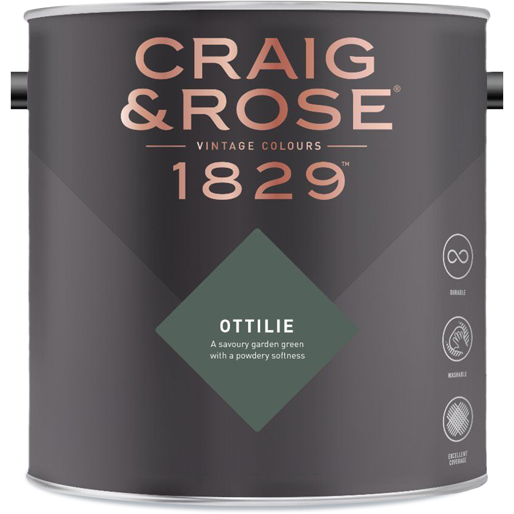 Transform your living area with Craig & Rose Kitchen and Bathroom Ottilie Eggshell Paint 2.5L. This delightful garden green with a soft powdery texture creates a rich and luxurious living space when paired with wooden elements and velvet furnishings. The paint offers durability, washability, and excellent coverage, making it an ideal choice for use on walls, trim, and furniture in high-traffic areas such as kitchens and bathrooms.