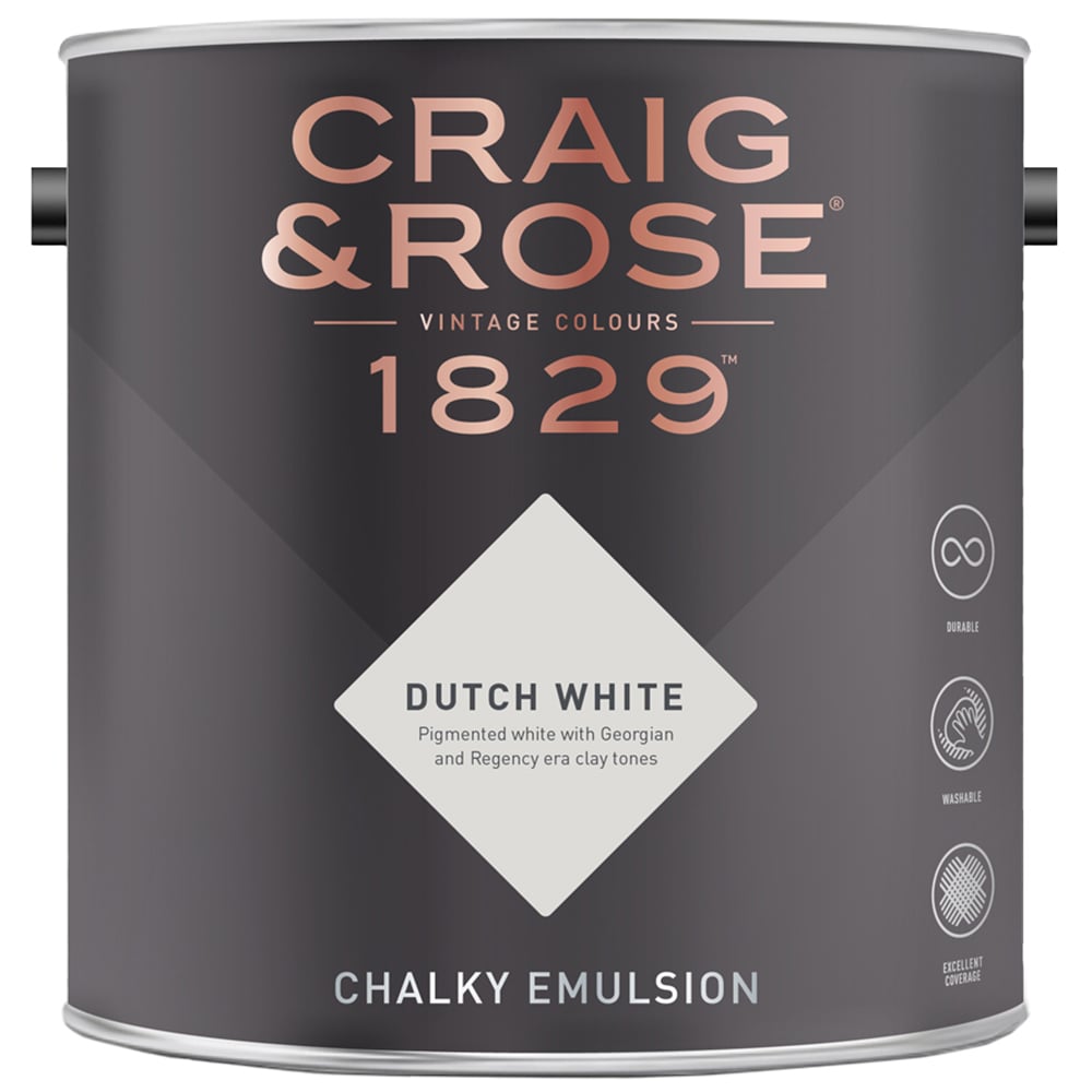 Enliven your space with the vibrant colours and smooth finish of the Craig & Rose Walls and Ceilings Dutch White Chalky Matt Emulsion Paint 2.5L. It provides a smooth, dead flat matt finish with just 3% sheen, enhancing the beauty of your walls and furniture. The paint is durable and washable, making it easy to clean and maintain. It offers excellent coverage, so you need fewer coats to get the perfect look. The Dutch white colour brings a sophisticated touch to any room or furniture with its rich and vibrant hue. It dries quickly and is easy to apply, giving you a flawless finish in no time.