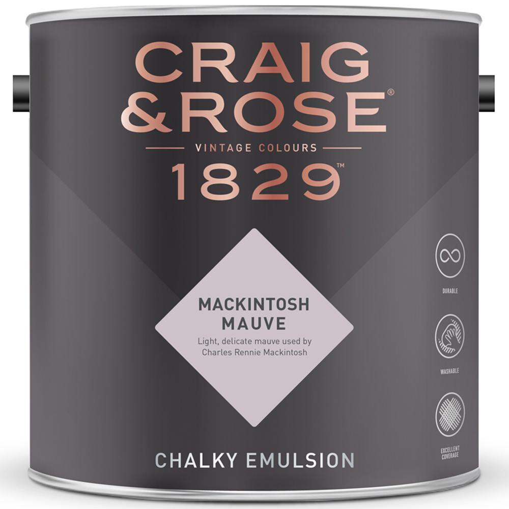 A light mauve, delicate and floral, often used by Charles Rennie Mackintosh for decorations and motifs. It is for use on interior walls, ceilings, and furniture. A durable, classic matt finish with a soft, velvety texture. Cleverly hides imperfections and offers exceptional colour intensity. The durable product offers excellent coverage and is rated A+ for indoor air quality. Please note: This paint is mixed to order, so cannot be returned or refunded.