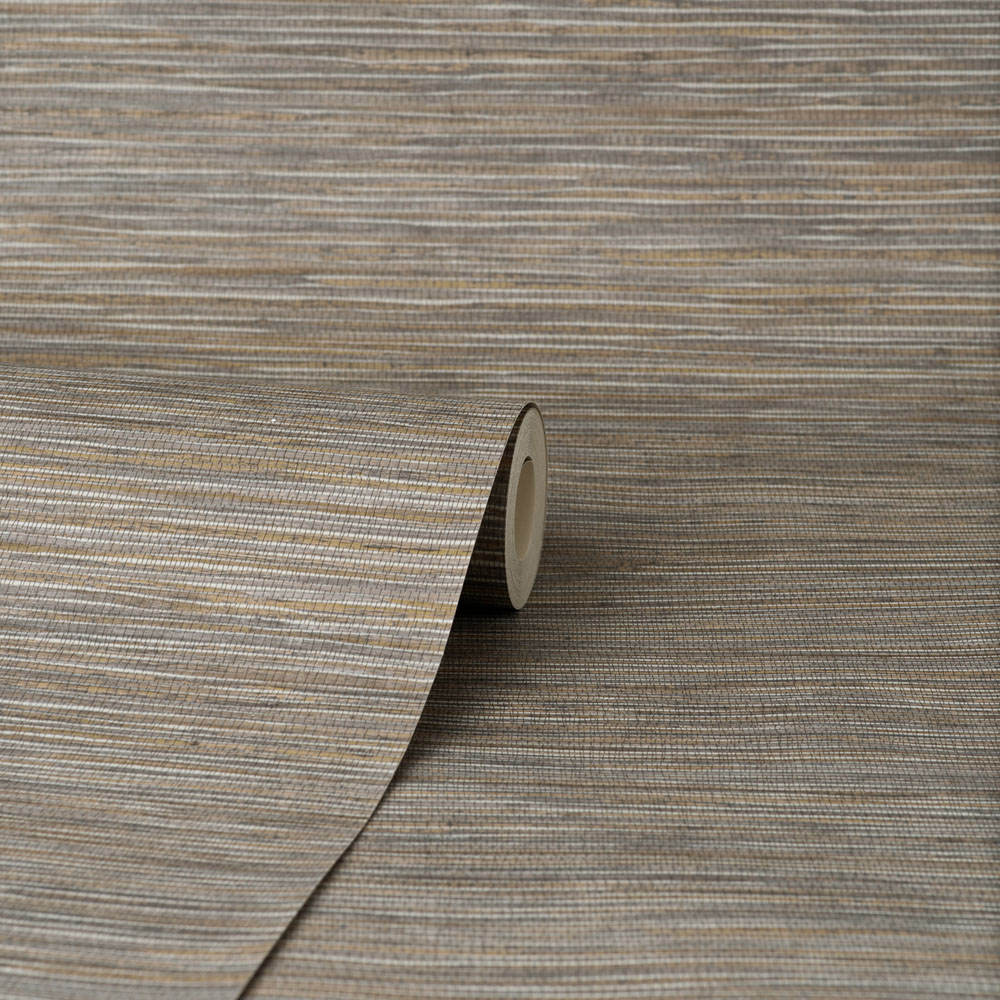 Enhance your home's decor with the Crown Fusion Plain Stone Grey Wallpaper. This wallpaper features a realistic grasscloth texture and a plain design, providing intricate detail and a luxurious feel. It is crafted with water-based inks and includes shimmering mica highlights. This wallpaper is suitable for all four walls, adding a sophisticated vibe to any interior space.
