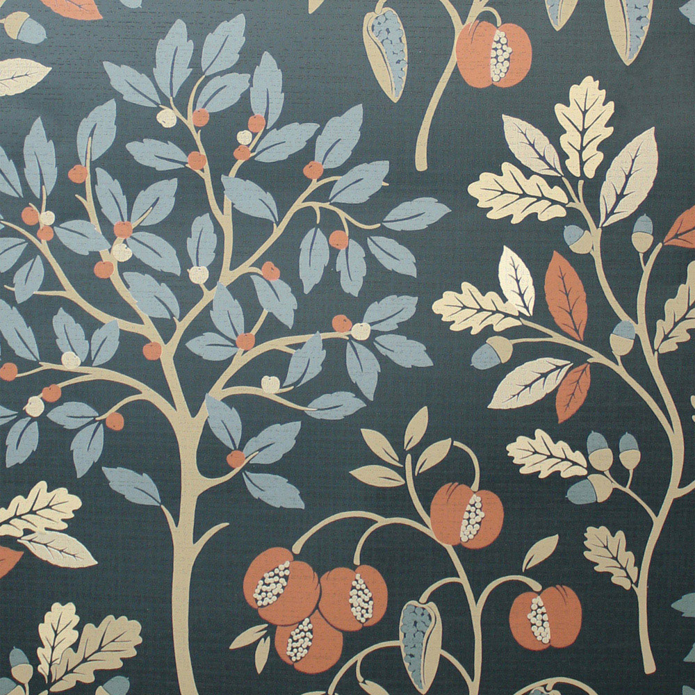 Transform your living space with the exquisite Crown Rowan Autumn Trees Navy Wallpaper. This luxurious textured wallcovering draws inspiration from the enchanting woodlands of the UK, showcasing iconic English elements such as acorns, oak leaves, and fruit trees. The design exudes a sense of warmth and comfort, embodying a contemporary interpretation of the arts and crafts movement. Its subtle fabric-like background and on-trend autumnal colour palette effortlessly elevate any living space. Whether used to adorn all four walls or combined with the coordinating wallcovering for a relaxed ambience, this stunning design promises to make a statement in your home. Roll Length: 10m. Roll Width: 53cm. Pattern Repeat: 53/27cm. Pattern Match: Half Drop Match. Application: Paste the Wall.