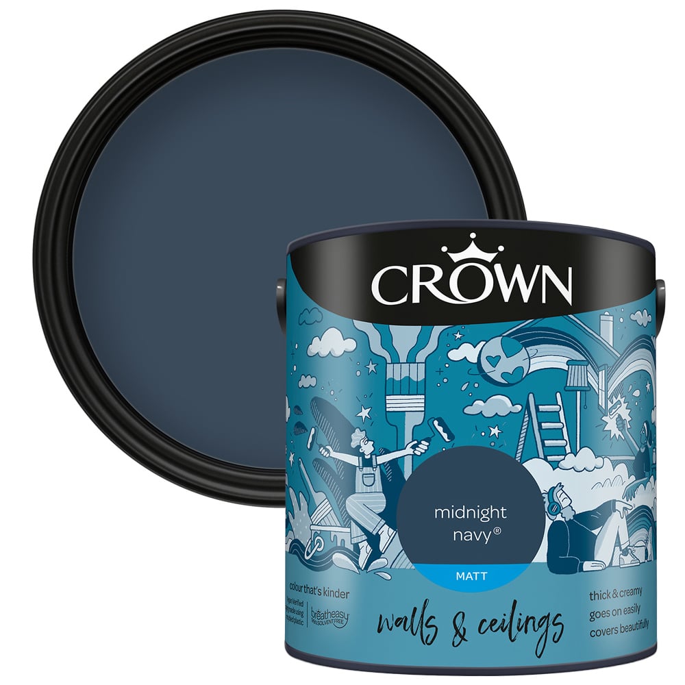 Crown Matt Emulsion Paint benefits from the virtually odour-free breatheasy formula and offers a modern look with no surface shine. Perfect for giving a new lease of life to your space, this thick and creamy formula goes on easily and with great coverage. Whether you opt for more muted tones or a bold statement, this paint will make your walls and ceilings look fantastic with ease.