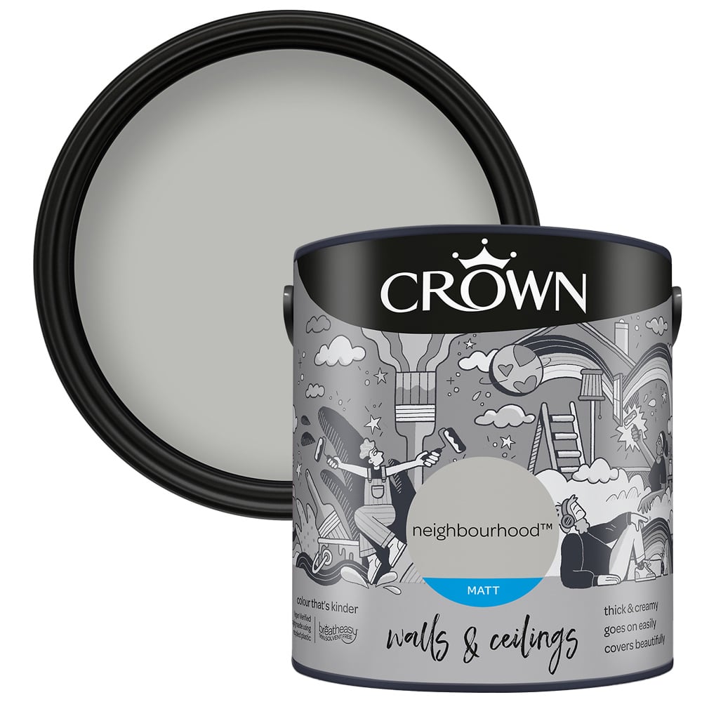 Crown Matt Emulsion Paint benefits from the virtually odour-free breatheasy formula and offers a modern look with no surface shine. Perfect for giving a new lease of life to your space, this thick and creamy formula goes on easily and with great coverage. Whether you opt for more muted tones or a bold statement, this paint will make your walls and ceilings look fantastic with ease.