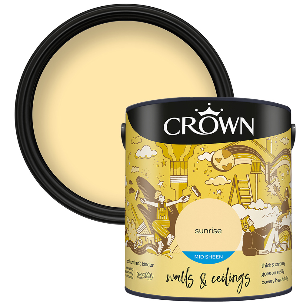 Crown Walls and Ceilings Mid Sheen Emulsion provides a rich, reflective finish, for a subtle surface shine. Offering excellent versatility and complete coverage, this water-based paint can be applied throughout your entire home including living rooms, dining rooms, bedrooms and hallways. Using carefully selected Vegan Verified ingredients, Crown’s unique breatheasy® 99% solvent-free formulation offers you the confidence to decorate your home safely. Limiting exposure to airborne triggers of asthma and allergy, it helps create a healthier space for your whole family; and we are pushing what's possible even further with packaging made using recycled plastic. This durable paint is sure to give your home a new lease of life and is wipeable so you can keep your walls looking their best.