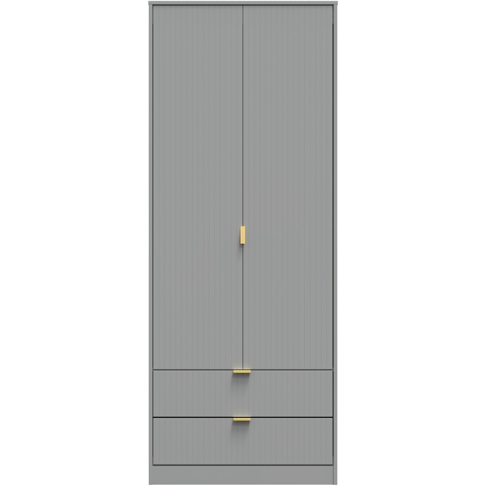 Make a beautiful addition to your home decor with this Crowndale Two Door Two Drawer Dusk Grey Wardrobe. This extra tall wardrobe is perfect for any home and is named for the door fronts' unique "Linear" pattern. It is scratch-resistant and has a dusk grey finish. The extra tall wardrobe features two doors, two drawers, sturdy hanging rail and fixed internal shelf with gold metal handles, gold hairpin legs and smooth metal drawer runners. Also, it is made in the United Kingdom, is of the highest quality, and is delivered directly to your location of choice by one of the two-person delivery teams. It comes fully assembled (although legs may be removed to prevent damage in transit).
