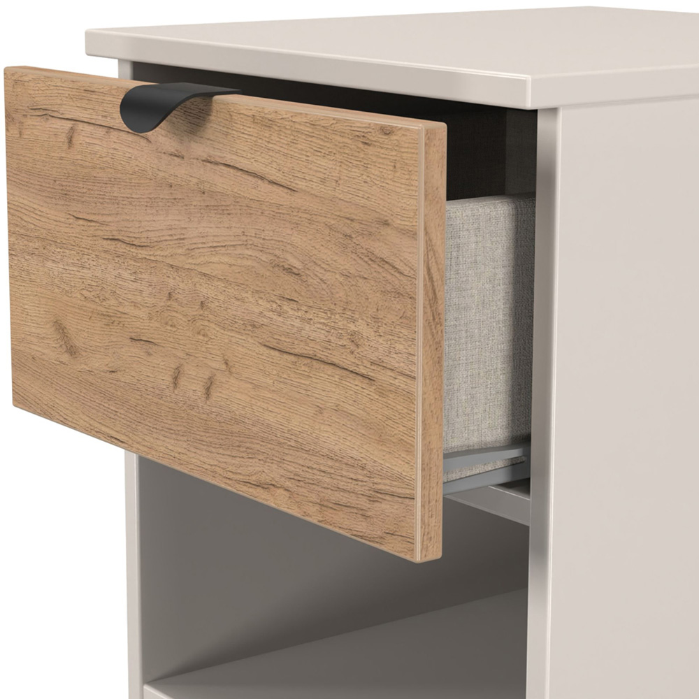 This compact bedside cabinet features a sturdy storage drawers and a lower open storage shelf making it both practical and stylish. Looking for something a bit different, then this range of furniture should be what you are looking for. Incorporating open shelf storage into it's design make sit one of our most practical ranges without sacrificing it's clean elegant style. This is also enhanced by the contemporary black metal handles. Guaranteed to stand out in any modern home. All our furniture is made in the United Kingdom, to the highest quality. It is delivered direct to your location of choice by one of our two man delivery teams, and come full assembled (although legs may be removed to prevent damage in transit).