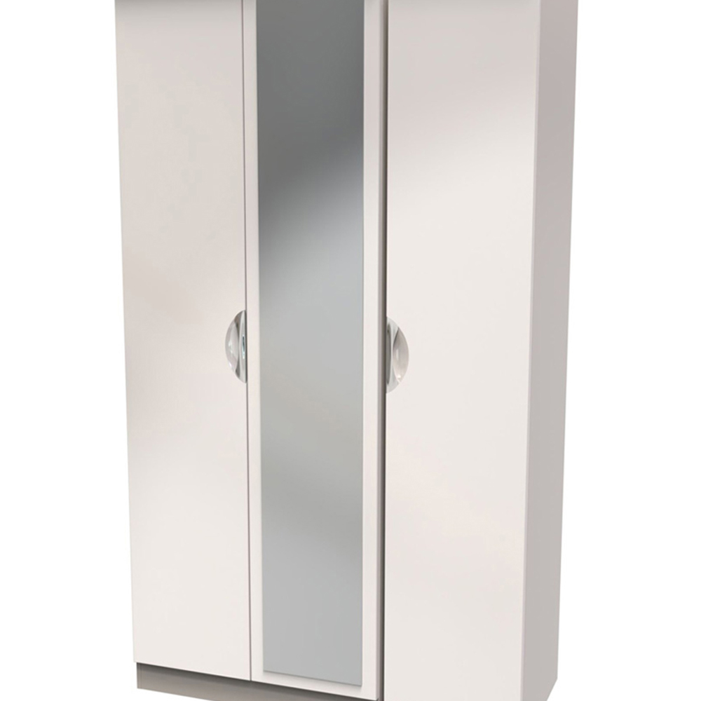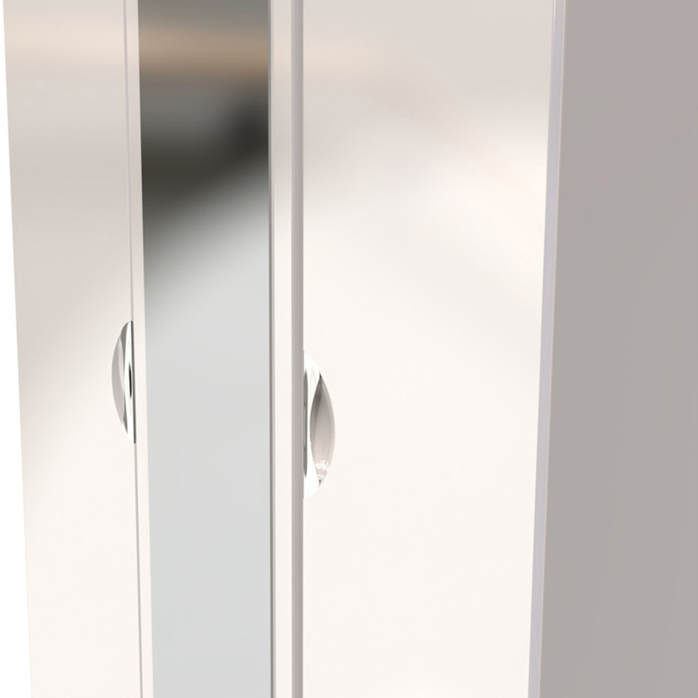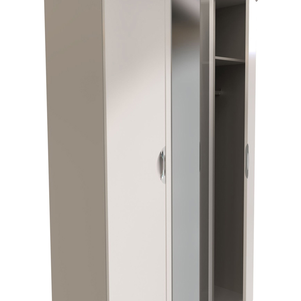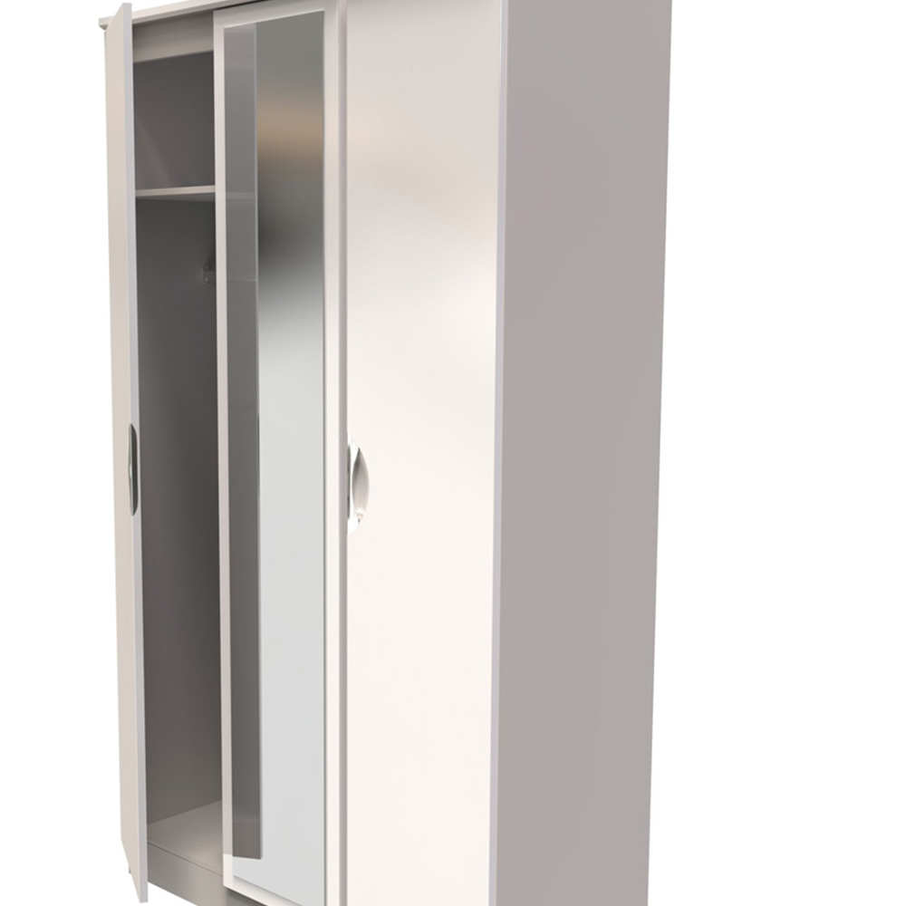 The Crowndale Camden Kashmir Gloss Mirrored Wardrobe is a spacious and stylish addition to any bedroom. With its full height triple doors, including a single mirrored door, it offers ample storage space for all your belongings. The wardrobe features a sturdy hanging rail and a high level shelf, providing practicality and convenience. Its clean and contemporary design seamlessly blends with any modern home decor. The scratch-resistant veneer ensures durability, while the extensive colour options and distinctive cut-out handles add a touch of style. Choose this wardrobe for its smooth gloss finish and indented metal handles, and enjoy a clutter-free and organised bedroom.