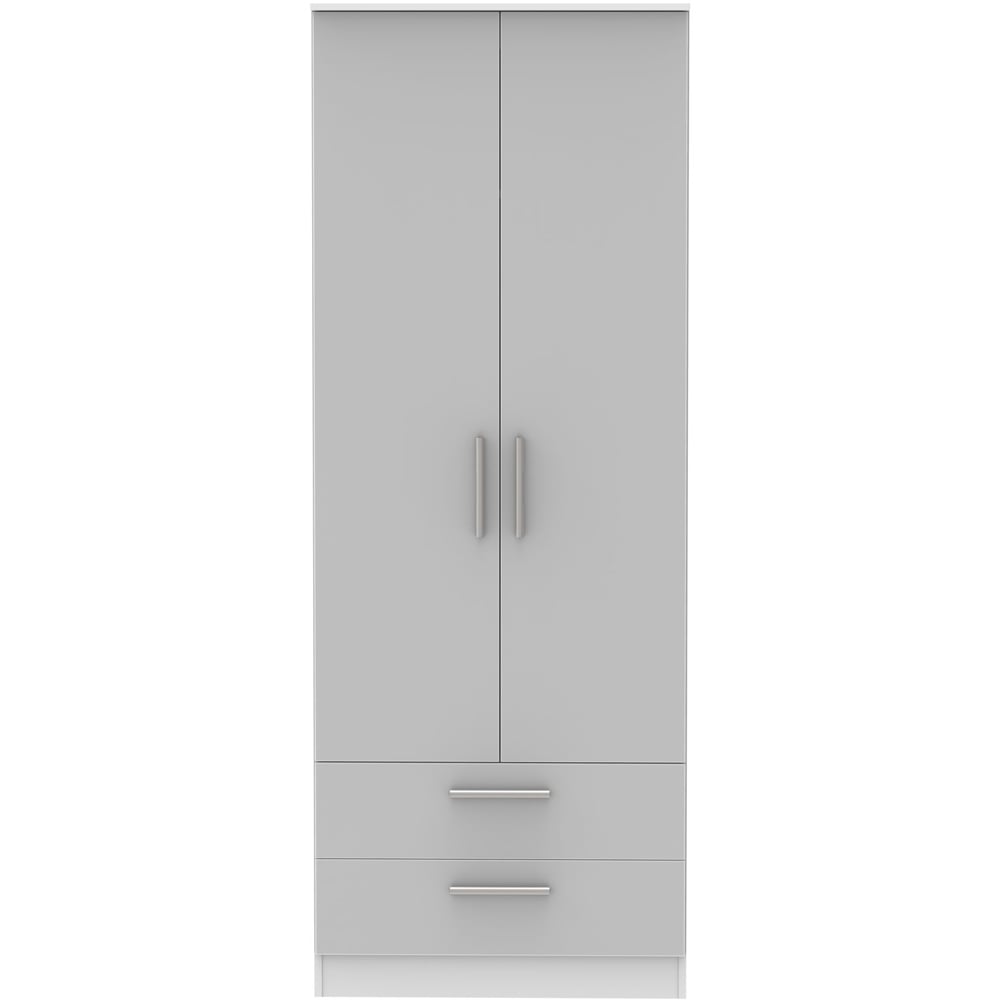 Create your dream bedroom and enhance its beauty in style with this practical yet stylish Crowndale Contrast Ready Assembled Tall Wardrobe. Made up of high-quality materials and long-lasting finishes, it features a double-door design with a full-width hanging rail and the added practicality of two full-width drawers. Carrying a stylish Grey and White Matt finish, the fronts are complemented by sleek designer-style metal handles and when you open the drawers, you'll notice the smooth metal runners and linen-look interior. Made in the United Kingdom of the highest quality, it comes fully assembled for hassle-free usage.