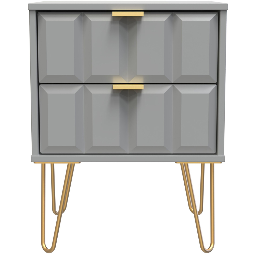 Crowndale Cube 2 Drawer Dusk Grey Bedside Table Ready Assembled