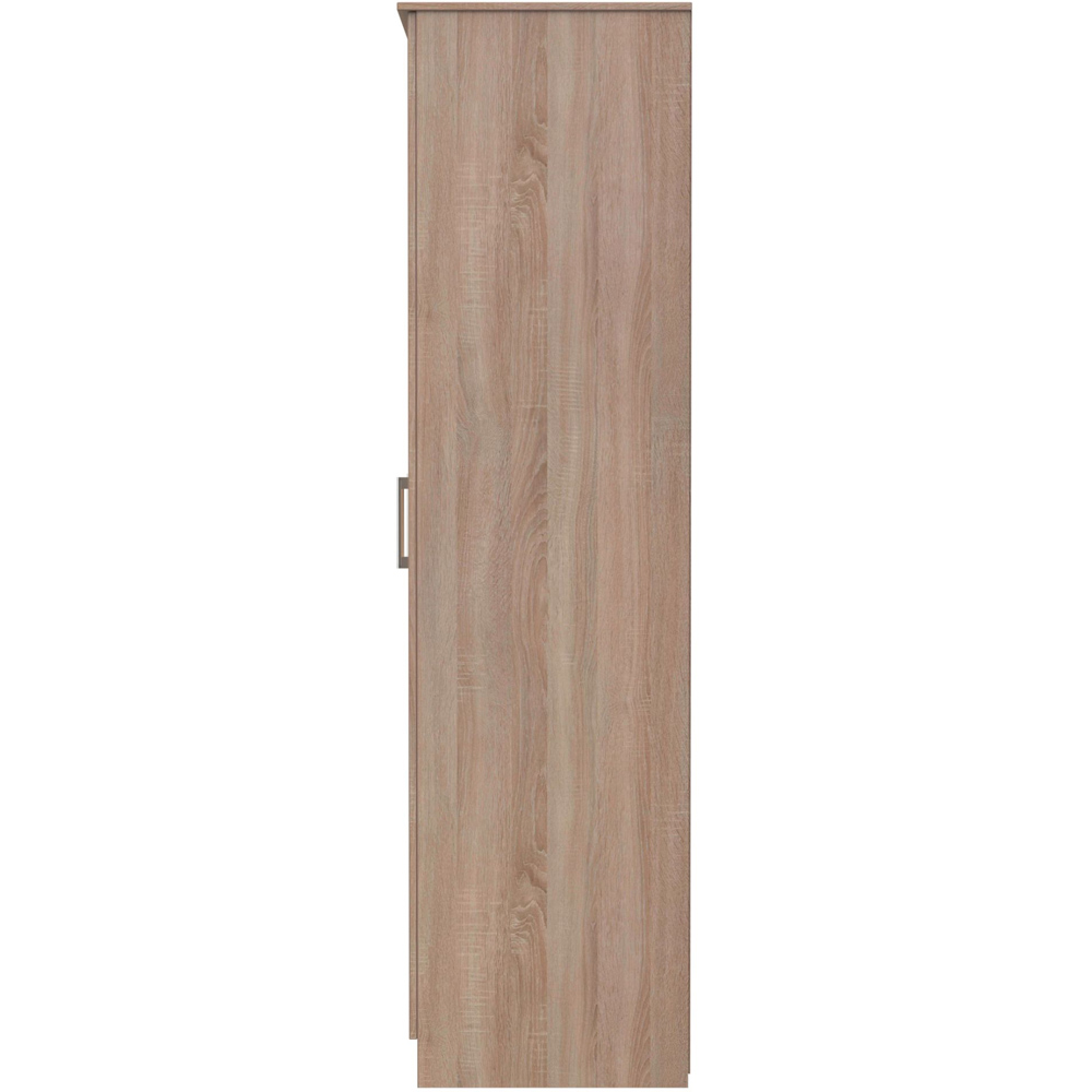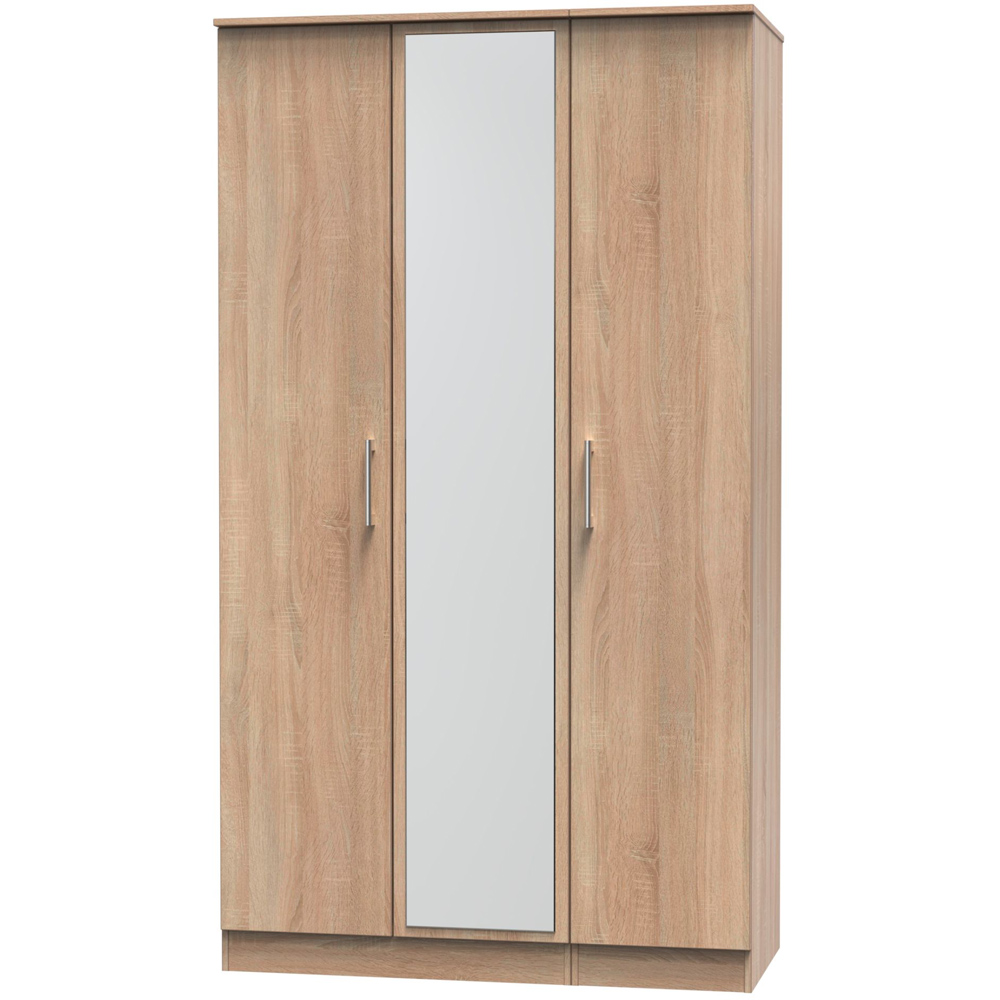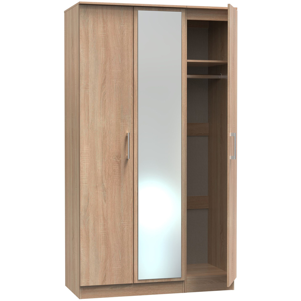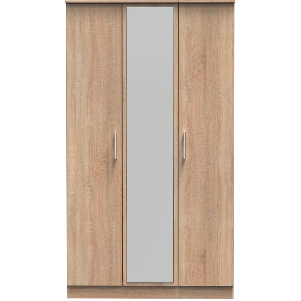 Pretty and practical, this Devon Ready Assembled Wardrobe will make a perfect addition to any bedroom. It features a full-height, three-door design with a full-height single mirrored door, sturdy hanging rail and high-level shelf to offer a generous organisation space and practicality. With sleek metal handles and Bardolino oak wood effect finish, this design gives both a traditional and contemporary feel to any room. Made in the United Kingdom of the highest quality, it caters for your individual storage needs.