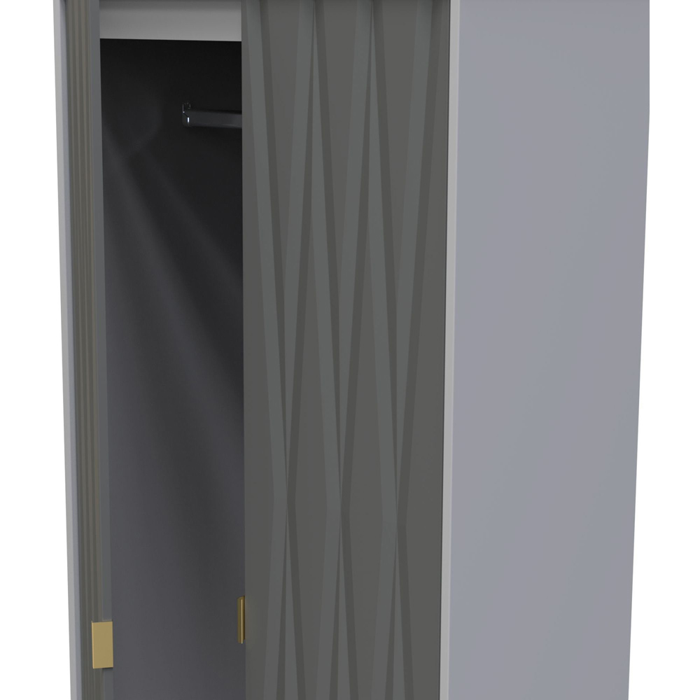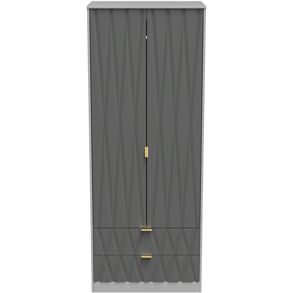 Add style and practicality to your space with the Crowndale Diamond 2-door 2-drawer Matt Shadow and Grey Tall Double Wardrobe. Perfect for any bedroom, this tall wardrobe features a full-width hanging rail and the added practicality of two full-width drawers. Contemporary and chic, with distinctively patterned drawers and a classic colour, this unit is sure to complement any interior design. Also, finished with gold metal handles, it makes an elegant addition to instantly uplift your decor. This piece of furniture comes fully assembled (although legs may be removed to prevent damage in transit).