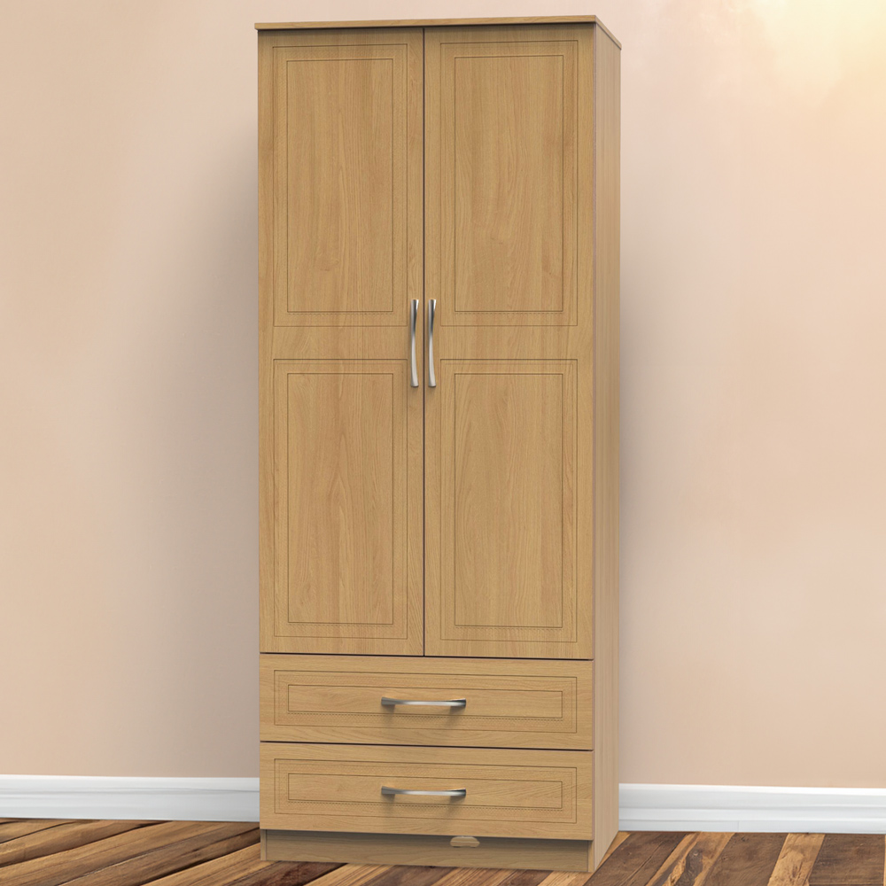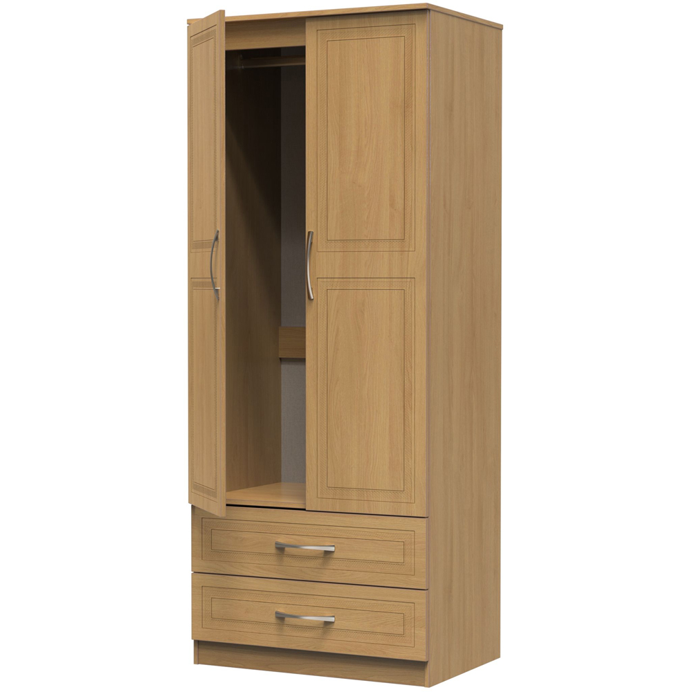 Crowndale Dorset 2 Door 2 Drawer Modern Oak Wardrobe Ready Assembled