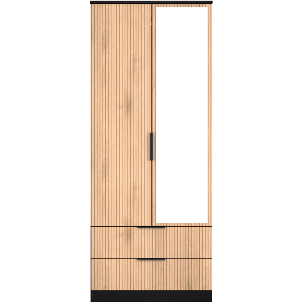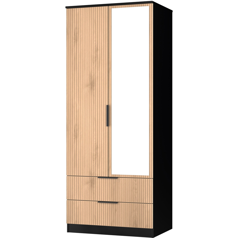 This full height double door wardrobe is perfect for any bedroom. Features the added practicality of 2 full width drawers and a external mirrored single door. Combining both simple elegance with modern styling, this new range comes with a striking slatted effect front, sturdy black metal handles and smooth metal drawer runners. Perfect for any modern home. All our furniture is made in the United Kingdom, to the highest quality. It is delivered direct to your location of choice by one of our two man delivery teams, and come full assembled (although legs may be removed to prevent damage in transit).
