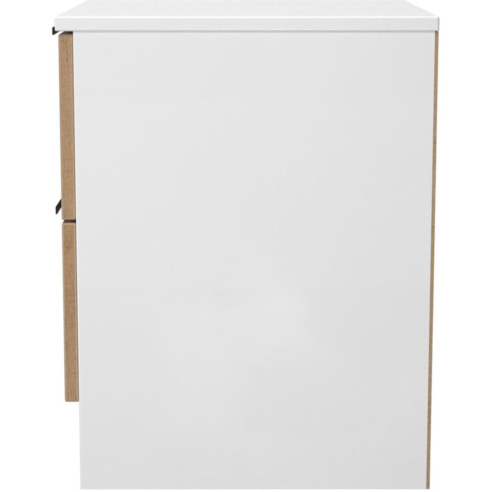 This 2 drawer bedside cabinet is practical and stylish. Perfect for any bedside or as a free standing storage unit. Combining both simple elegance with modern styling, this new range comes with a striking slatted effect front, sturdy black metal handles and smooth metal drawer runners. Perfect for any modern home. All our furniture is made in the United Kingdom, to the highest quality. It is delivered direct to your location of choice by one of our two man delivery teams, and come full assembled (although legs may be removed to prevent damage in transit).