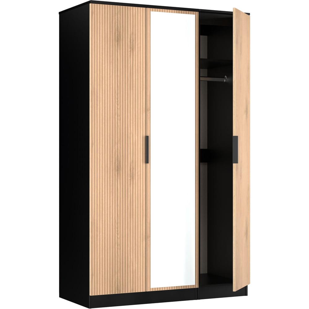 This full height triple 3 door wardrobe is perfect for any bedroom when a normal wardrobe is just not large enough. Also features a full height single mirrored door. Combining both simple elegance with modern styling, this new range comes with a striking slatted effect front, sturdy black metal handles and smooth metal drawer runners. Perfect for any modern home. All our furniture is made in the United Kingdom, to the highest quality. It is delivered direct to your location of choice by one of our two man delivery teams, and come full assembled (although legs may be removed to prevent damage in transit).