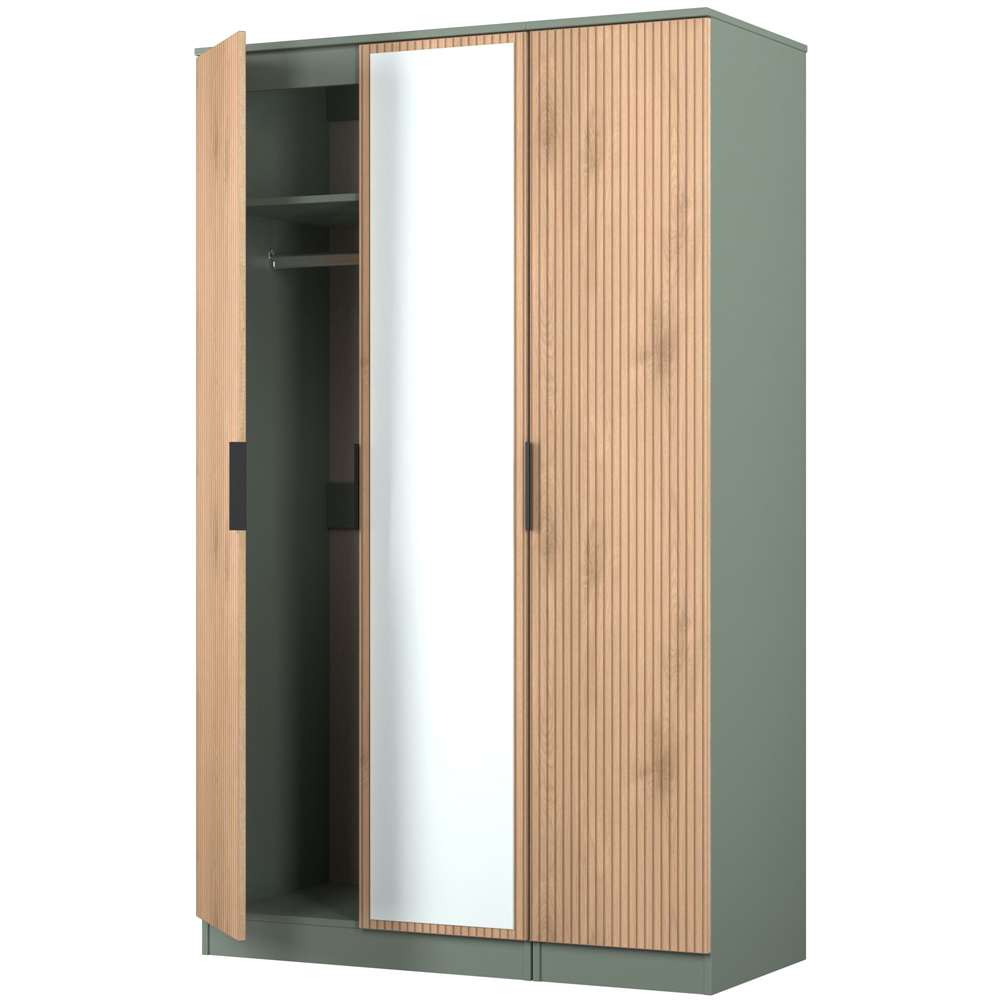 This full height triple 3 door wardrobe is perfect for any bedroom when a normal wardrobe is just not large enough. Also features a full height single mirrored door. Combining both simple elegance with modern styling, this new range comes with a striking slatted effect front, sturdy black metal handles and smooth metal drawer runners. Perfect for any modern home. All our furniture is made in the United Kingdom, to the highest quality. It is delivered direct to your location of choice by one of our two man delivery teams, and come full assembled (although legs may be removed to prevent damage in transit).