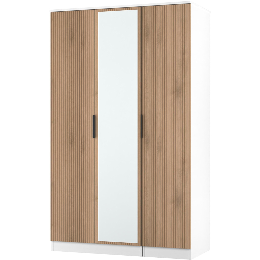 This full height triple 3 door wardrobe is perfect for any bedroom when a normal wardrobe is just not large enough. Also features a full height single mirrored door. Combining both simple elegance with modern styling, this new range comes with a striking slatted effect front, sturdy black metal handles and smooth metal drawer runners. Perfect for any modern home. All our furniture is made in the United Kingdom, to the highest quality. It is delivered direct to your location of choice by one of our two man delivery teams, and come full assembled (although legs may be removed to prevent damage in transit).
