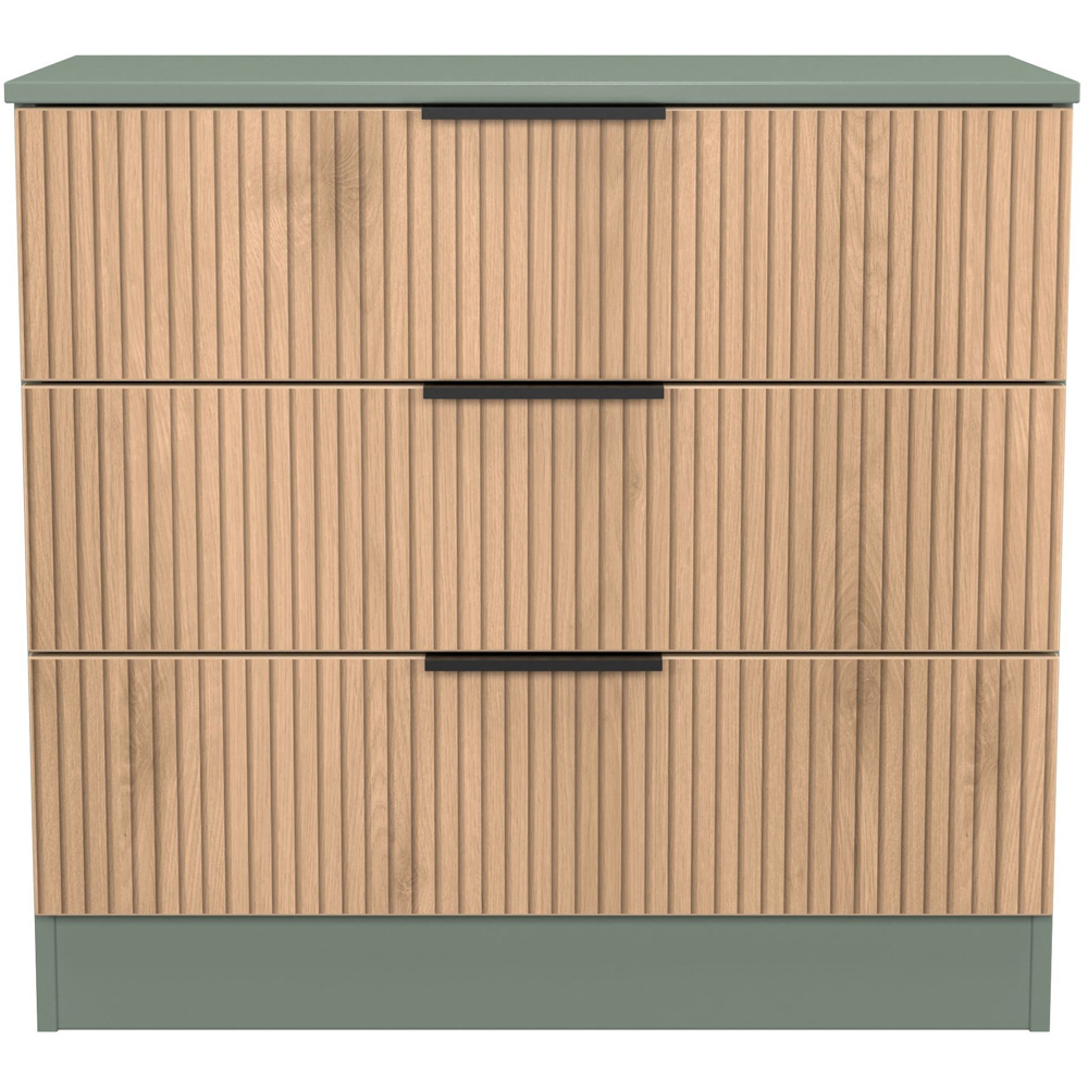 This wide 3 drawer chest of drawers is practical and stylish. Perfect for any home as a free standing storage unit. Combining both simple elegance with modern styling, this new range comes with a striking slatted effect front, sturdy black metal handles and smooth metal drawer runners. Perfect for any modern home. All our furniture is made in the United Kingdom, to the highest quality. It is delivered direct to your location of choice by one of our two man delivery teams, and come full assembled (although legs may be removed to prevent damage in transit).