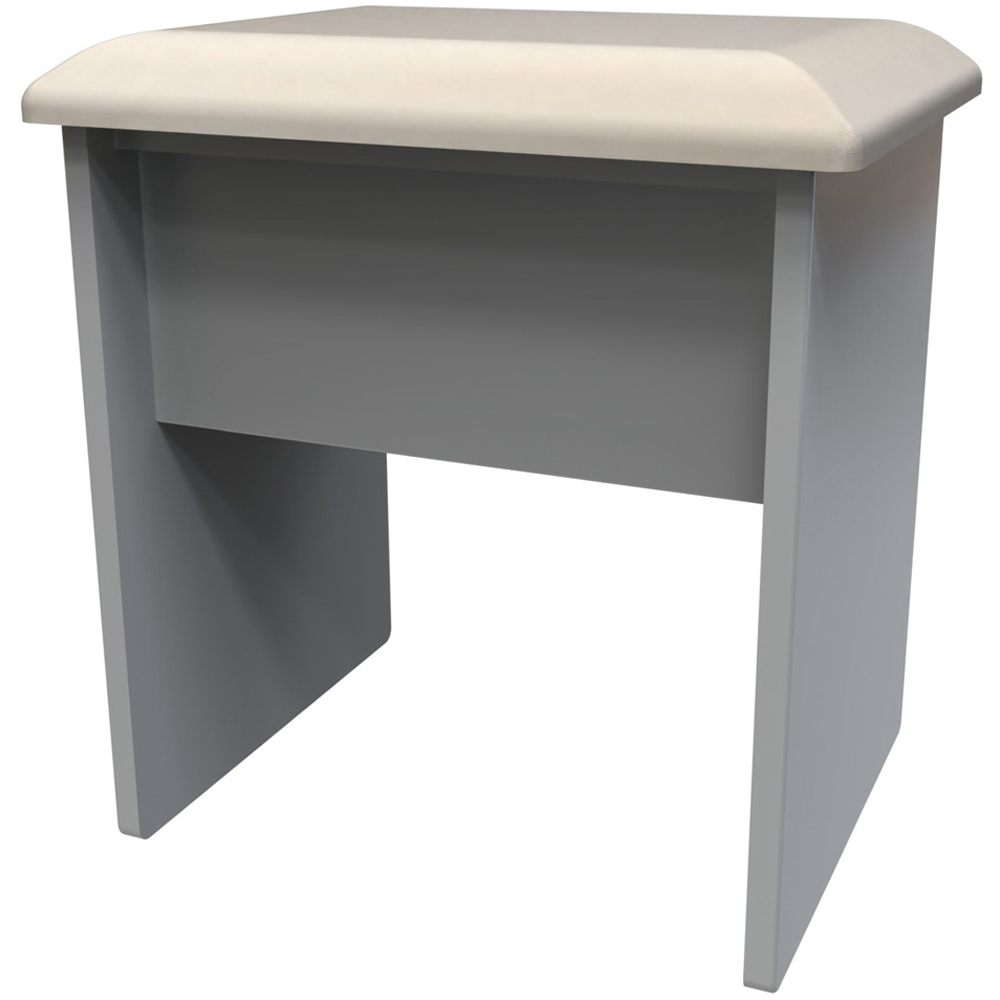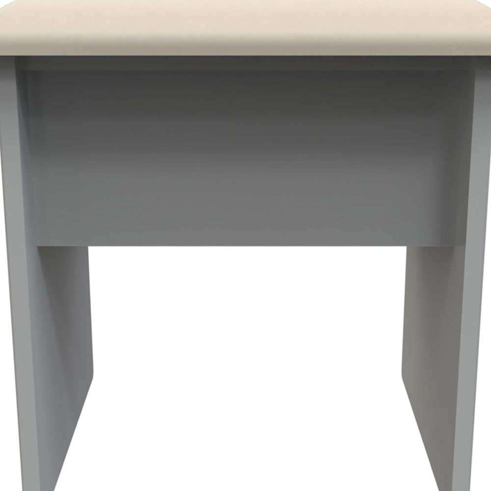 Add a touch of sophistication to any space with the Crowndale Kent Dusk Grey Dressing Table Stool. It is a compact and elegant vanity stool. Its light and simple design is complemented by a soft cushioned seat, providing both comfort and durability. This stool is the perfect companion for a desk or vanity - showcasing traditional edge finishes and wood effect tops, giving it a timeless and classic look. The contrasting finishes, such as the brushed steel handles mounted on wood-grained fronts, create beautiful tonal variations. Best of all, it comes fully assembled, saving you time and effort. Experience the beauty and craftsmanship of the assembled stool today.