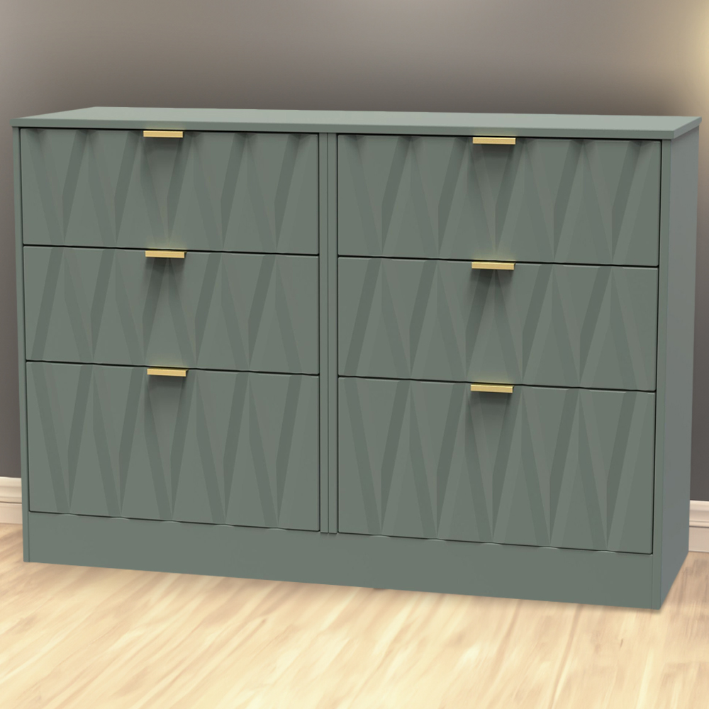 Crowndale Las Vegas 6 Drawer Reed Green Chest of Drawers Ready Assembled