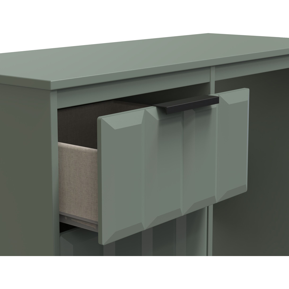Bring elegance and practicality to your place with Crowndale New York 3 Drawer Reed Green Dressing Table. This practical 3-drawer narrow desk/vanity is perfect for any bedroom or office. A matching stool and mirror (in 2 sizes) are also available. Elevate your texture palette with an item from the New York range. Elevating the feel of the room through adding depth to the furniture surface. Use it to compliment or contrast the room, helping to improve the visual interaction.