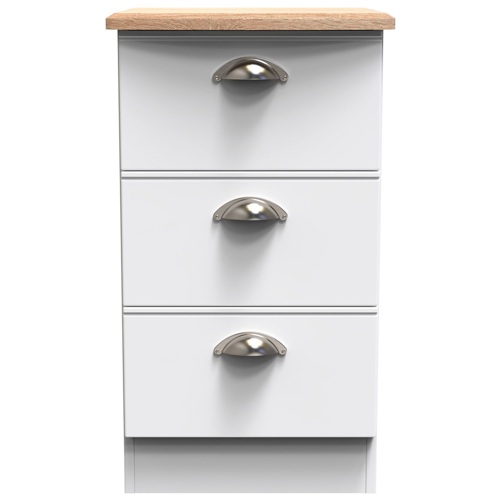 This three drawer bedside cabinet is practical and stylish. Perfect for any bedside or as a free standing storage unit. It's easy to create a bedroom that showcases effortless chic, with this stylish range. The shaker-inspired design exudes understated luxury, each piece is finished in a number of colours with brushed steel handles and the option of a contrasting oak effect top. A well-thought-out mix of hanging and flat storage that's suitable for any room. All the furniture is made in the United Kingdom, to the highest quality.