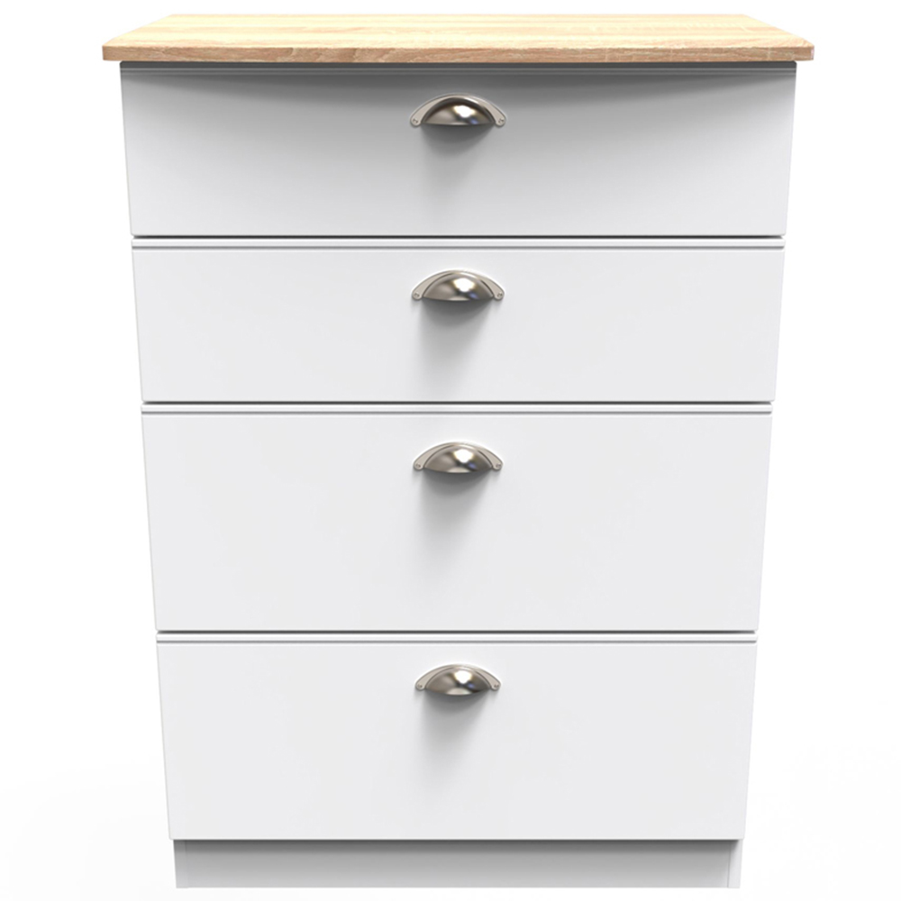This deep four drawer chest of drawers is practical and stylish. Perfect for any home as a free standing storage unit. It's easy to create a bedroom that showcases effortless chic, with this stylish range. The shaker-inspired design exudes understated luxury, each piece is finished in a number of colours with brushed steel handles and the option of a contrasting oak effect top. A well-thought-out mix of hanging and flat storage that's suitable for any room. All the furniture is made in the United Kingdom, to the highest quality.
