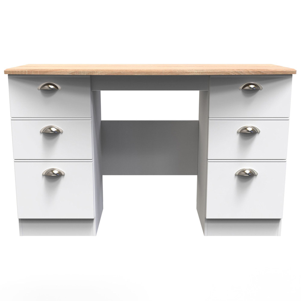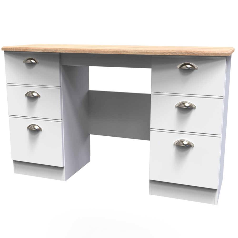 This practical six drawer kneehole desk/vanity is perfect for any bedroom or office. It's easy to create a bedroom that showcases effortless chic, with this stylish range. The shaker-inspired design exudes understated luxury, each piece is finished in a number of colours with brushed steel handles and the option of a contrasting oak effect top. A well-thought-out mix of hanging and flat storage that's suitable for any room. All the furniture is made in the United Kingdom, to the highest quality.