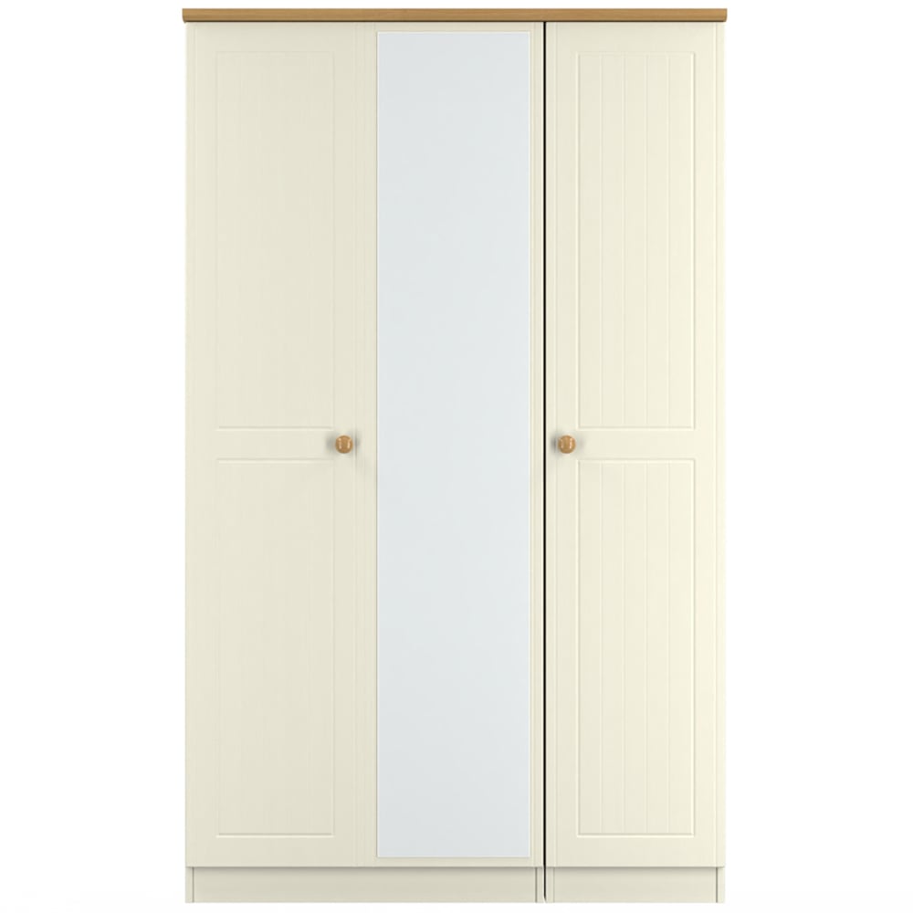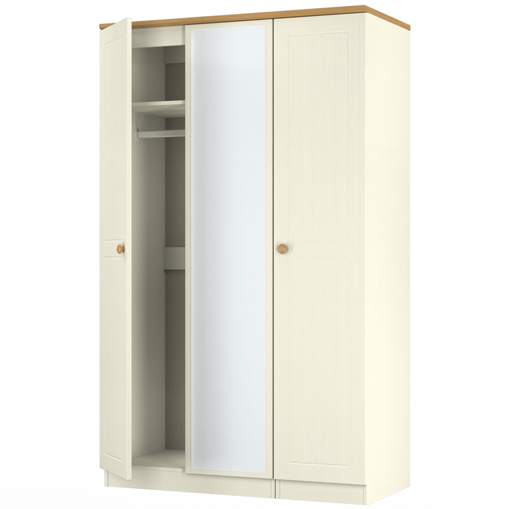 This full height triple 3 door wardrobe is perfect for any bedroom when a normal wardrobe is just not large enough. Also features a full height single mirrored door. The natural beauty of the Warwick bedroom range is complemented with curved tops. Enhanced by a delicate grooved design on all doors and drawers, with optional contrasting oak effect tops and handles this stunning bedroom range will suit any interior. It is made in the United Kingdom, to the highest quality. It is delivered direct to your location of choice two man delivery teams, and comes fully assembled (although legs may be removed to prevent damage in transit).